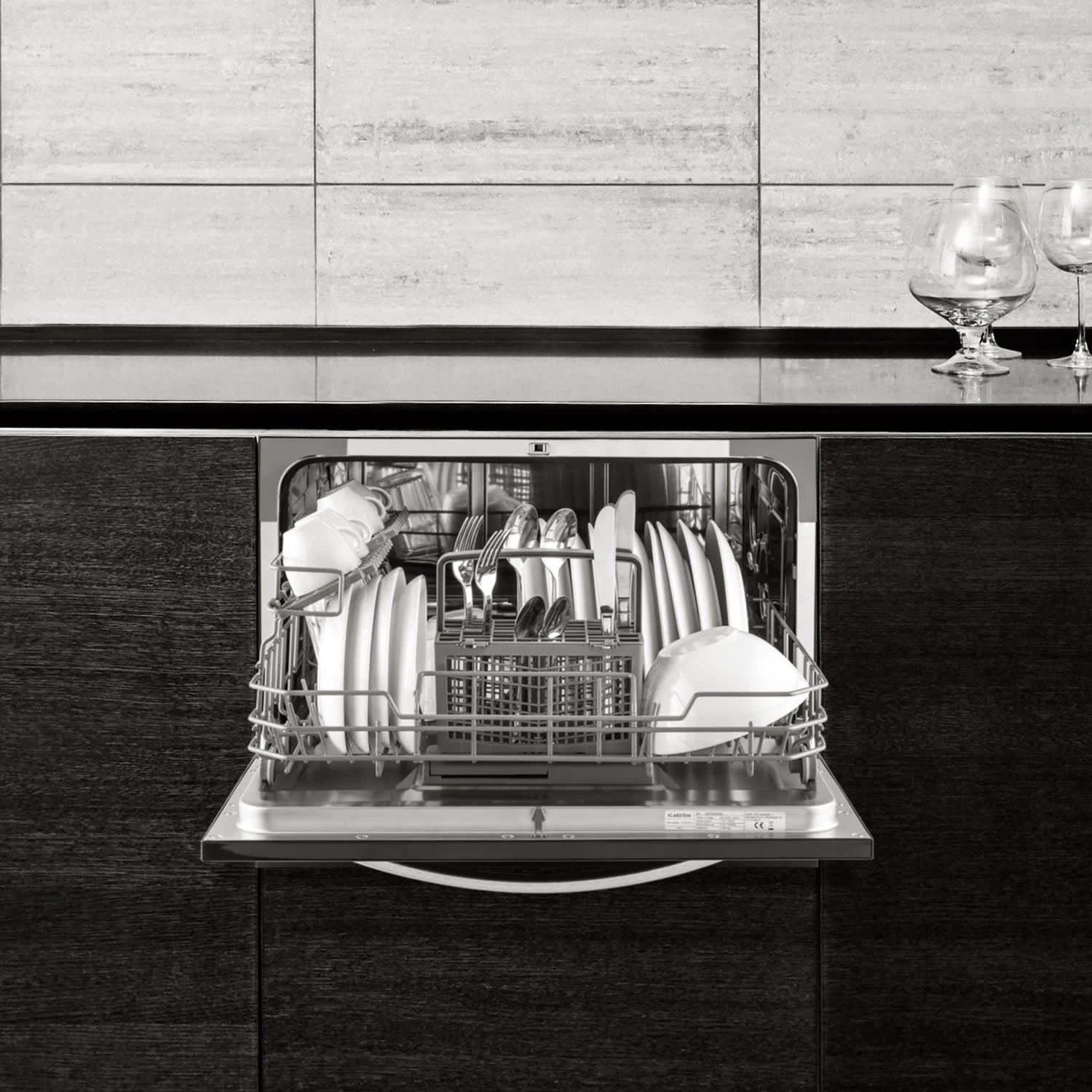 Die Klarstein Amazonia 6 Luminance Geschirrspülmaschine ist die neue Reinigungshilfe mit dem besonderen Look in deinem Haushalt! Bis zu 6 Maßgedecke finden in ihrem Inneren Platz. Mit 1380 Watt Leistung und sieben unterschiedlichen Programmen rückt Amazonia 6 Luminance dem verschmutzen Geschirr zu Leibe. Alle Programme lassen sich schnell und einfach über die aufgeräumte Touch-Armatur einstellen. Die Amazonia 6 Luminance ist als Einbaugerät oder Tischgeschirrspüler nutzbar. Ihr edles Design mit geschwungenem Edelstahlgriff bringt einen Hauch von Luxus in jede Küche.