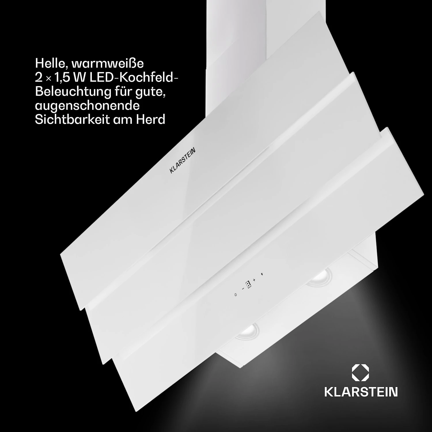 Besonderen Reiz erlangt die Klarstein Antonia Dunstabzugshaube durch ihre edle Front aus drei glanzvollen Glassegmenten. Damit nichts den edlen Look durchbricht, sind sämtliche Bedienelemente als Touchpanel mit Display direkt in die Oberfläche integriert.