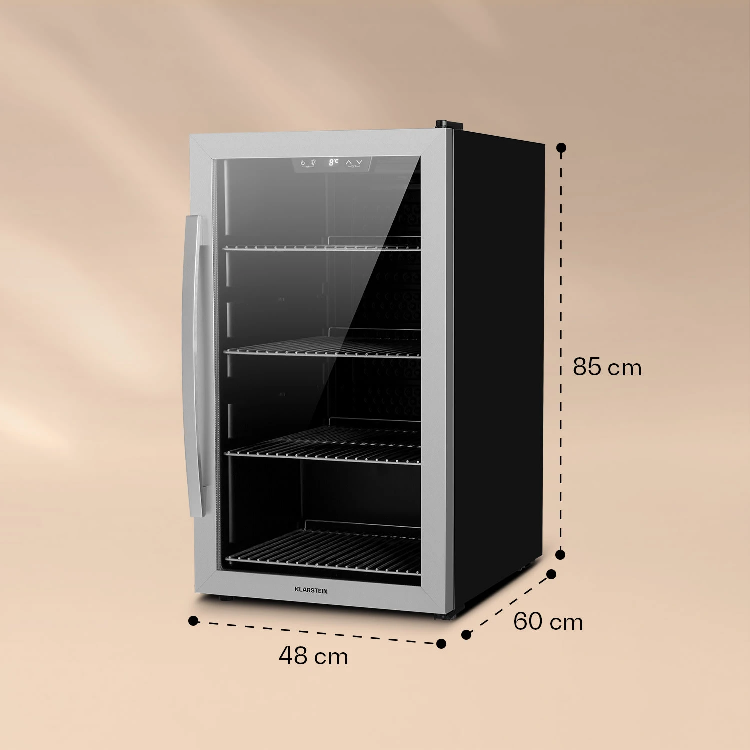 Gut gekühlt erfrischt besser: Der Klarstein Beersafe 4XL ist ein kompakter Getränkekühlschrank mit Glastür mit einem Fassungsvermögen von 124 Litern.