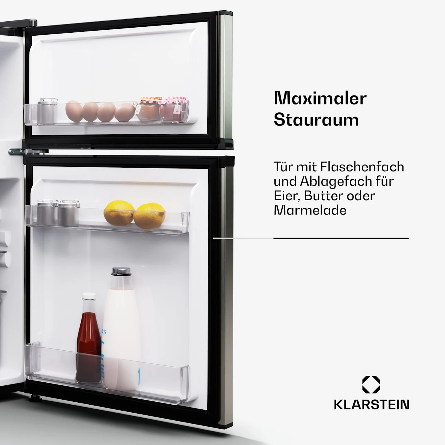 Kühlraum: 2 Türfächer für Flaschen, Dosen & Eier