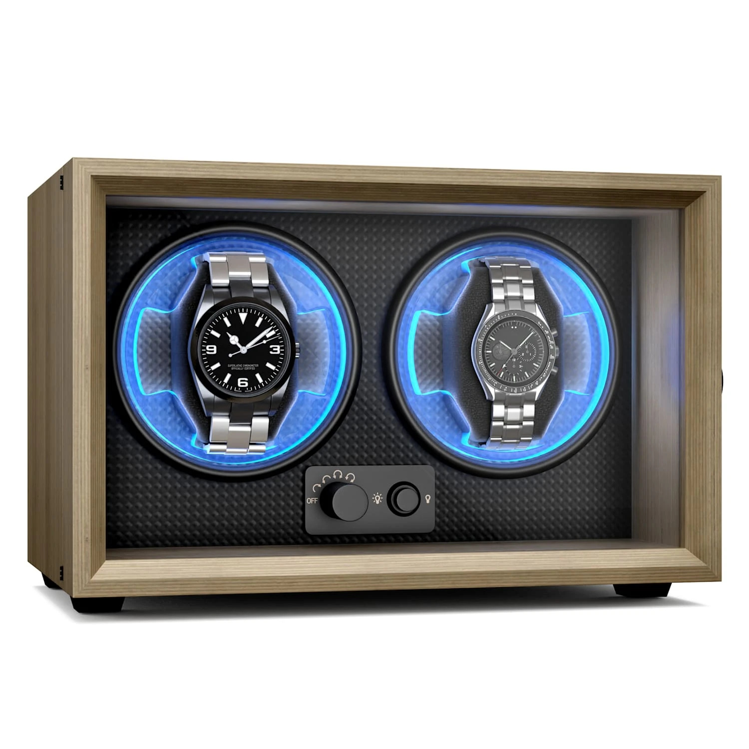 Formvollendet: eleganter Uhrenbeweger für zwei Uhren mit hochwertigem Design in Holz-Optik