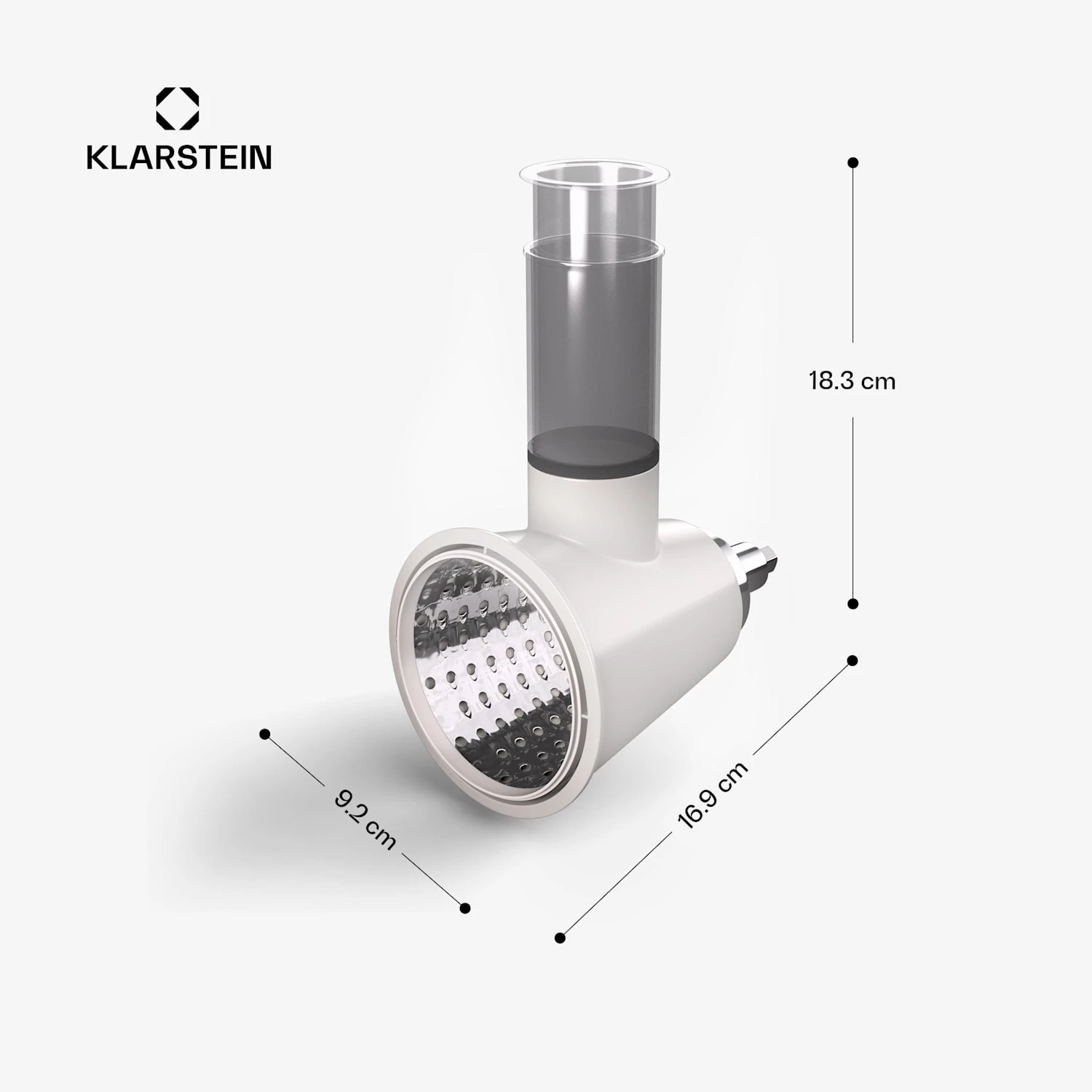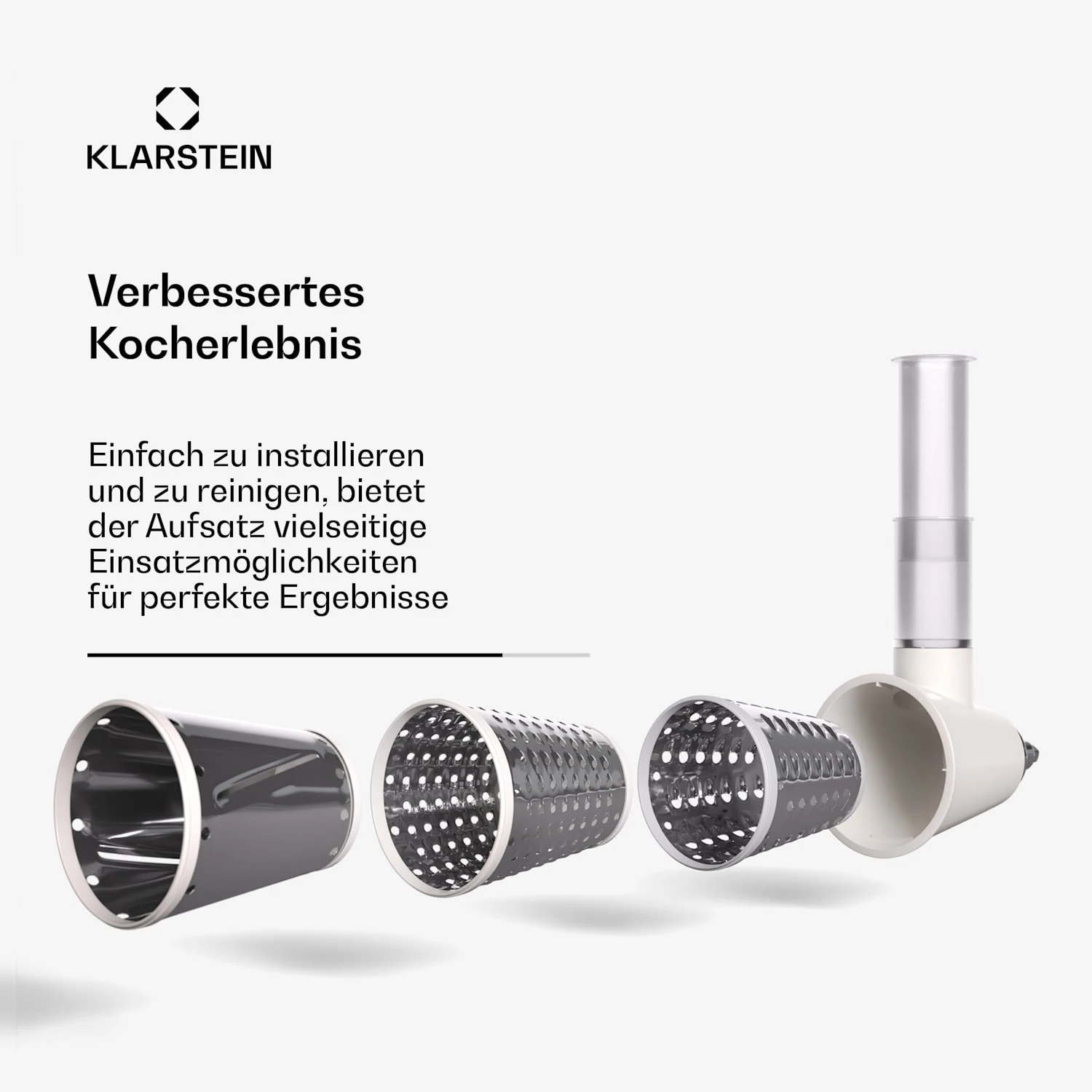 Der Klarstein Chiara Salat-Aufsatz ist einfach zu montieren und zu reinigen. Wechseln Sie mühelos zwischen den verschiedenen Klingen, um die idealen Zutaten zuzubereiten.