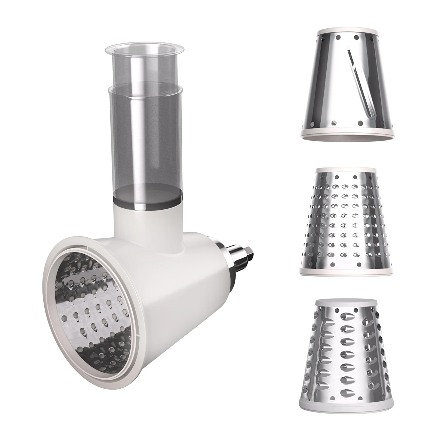 Vielseitige Klingenoptionen: Enthält eine 5mm Schneideklinge, eine 6mm grobe Reibklinge und eine 3mm feine Reibklinge für die Zubereitung verschiedener Zutaten.