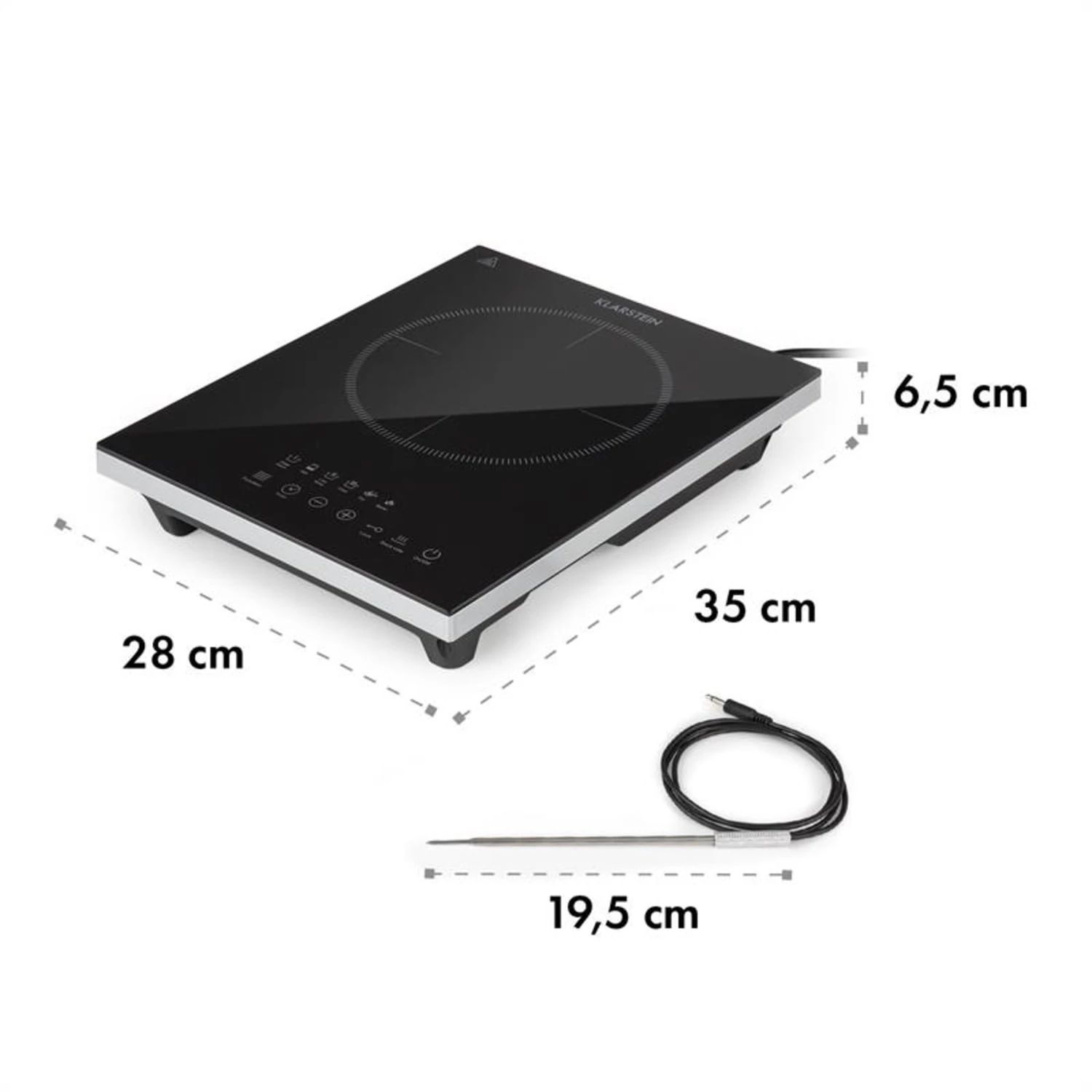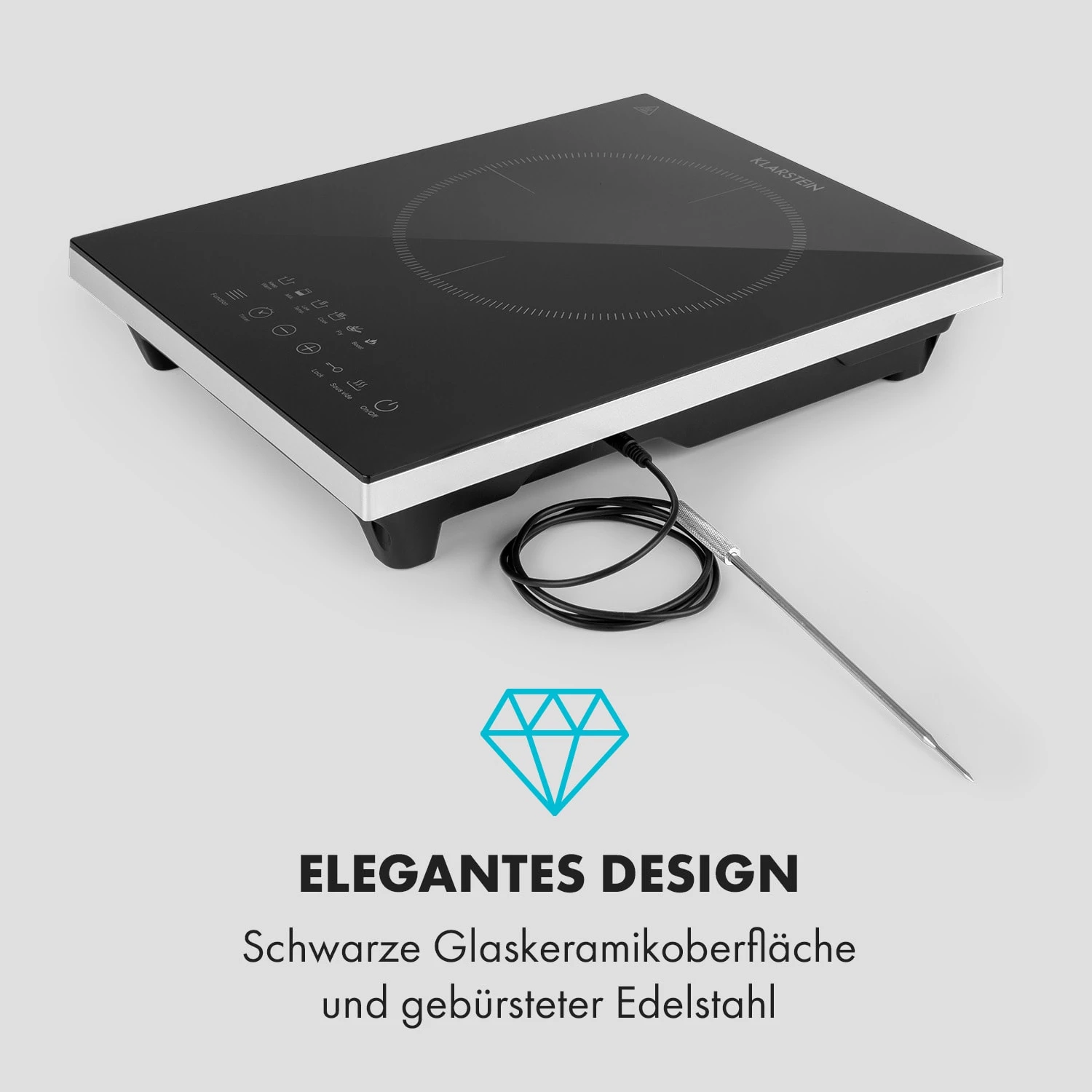 Das Klarstein Cook n Roll Kochfeld lässt es mit einer Gesamtleistung von 2000 Watt ordentlich krachen und bietet ganze 26 cm Durchmesser auf der Tanzfläche seiner Einzelkochzone. Damit ist es die perfekte Ergänzung für Wochenend-Häuschen, Wohnheimzimmer und Singleküchen in denen es heiß her gehen soll. Bedient wird das Kochfeld unkompliziert über sein integriertes Touch-Bedienfeld und LED-Display. Dort können unter anderem die 6 Garprogramme, die gewünschte Heizleistung in 10 Stufen, ein bis zu 3-stündiger Abschalttimer oder die praktische SousVide-Funktion gewählt werden. Für perfekte Garergebnisse sorgt die SousVide-Funktion mit HeatControl: Einfach das mitgelieferte Garthermometer am Kochfeld anschließen, SousVide-Funktion aktivieren und dann die gewünschte Temperatur zwischen 40 und 160 °C einstellen. Wird die gewünschte Temperatur erreicht oder überschritten, macht dich die Kochplatte umstandslos darauf aufmerksam, damit du den Takt verringern kannst.
