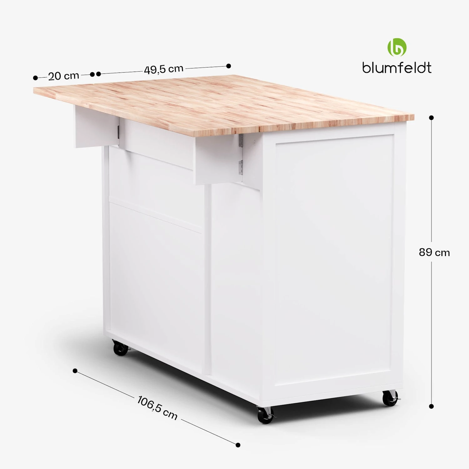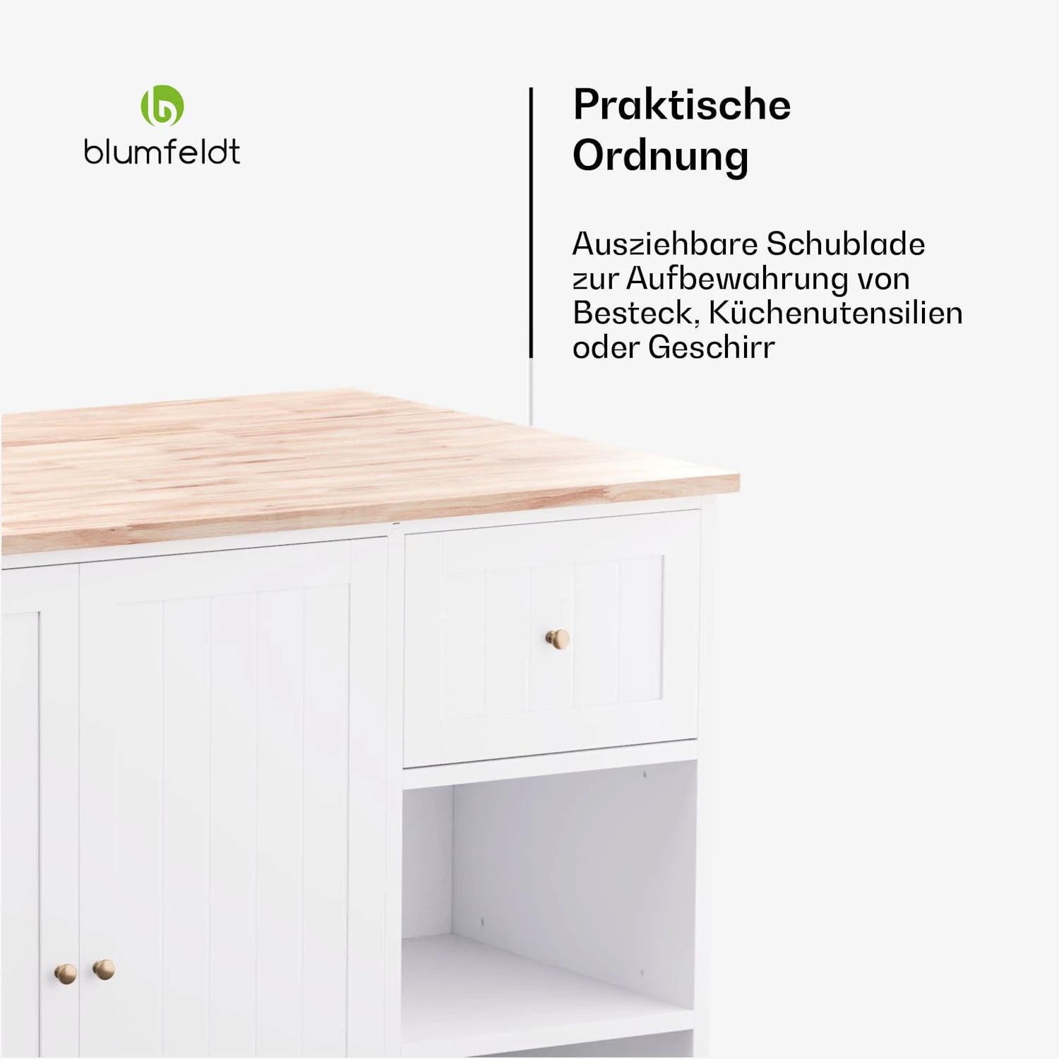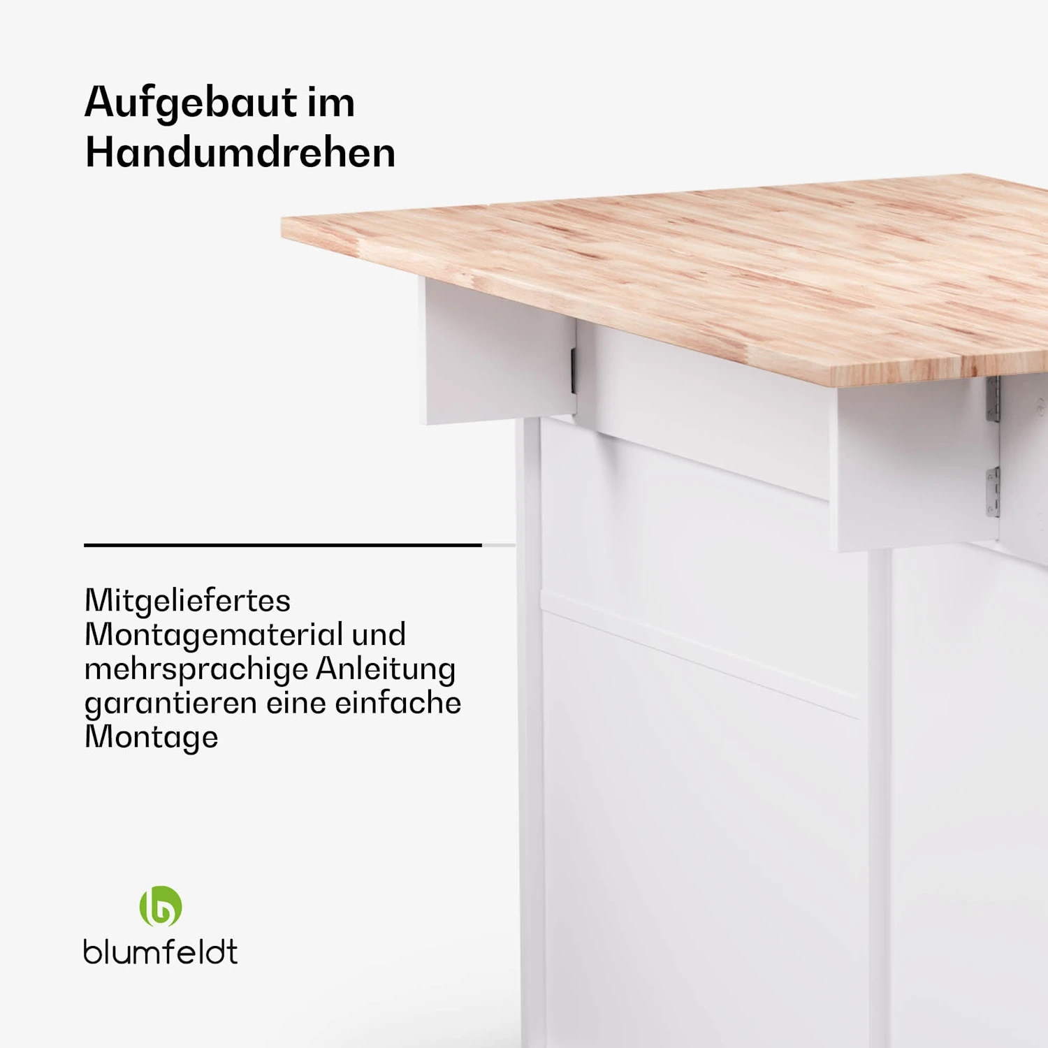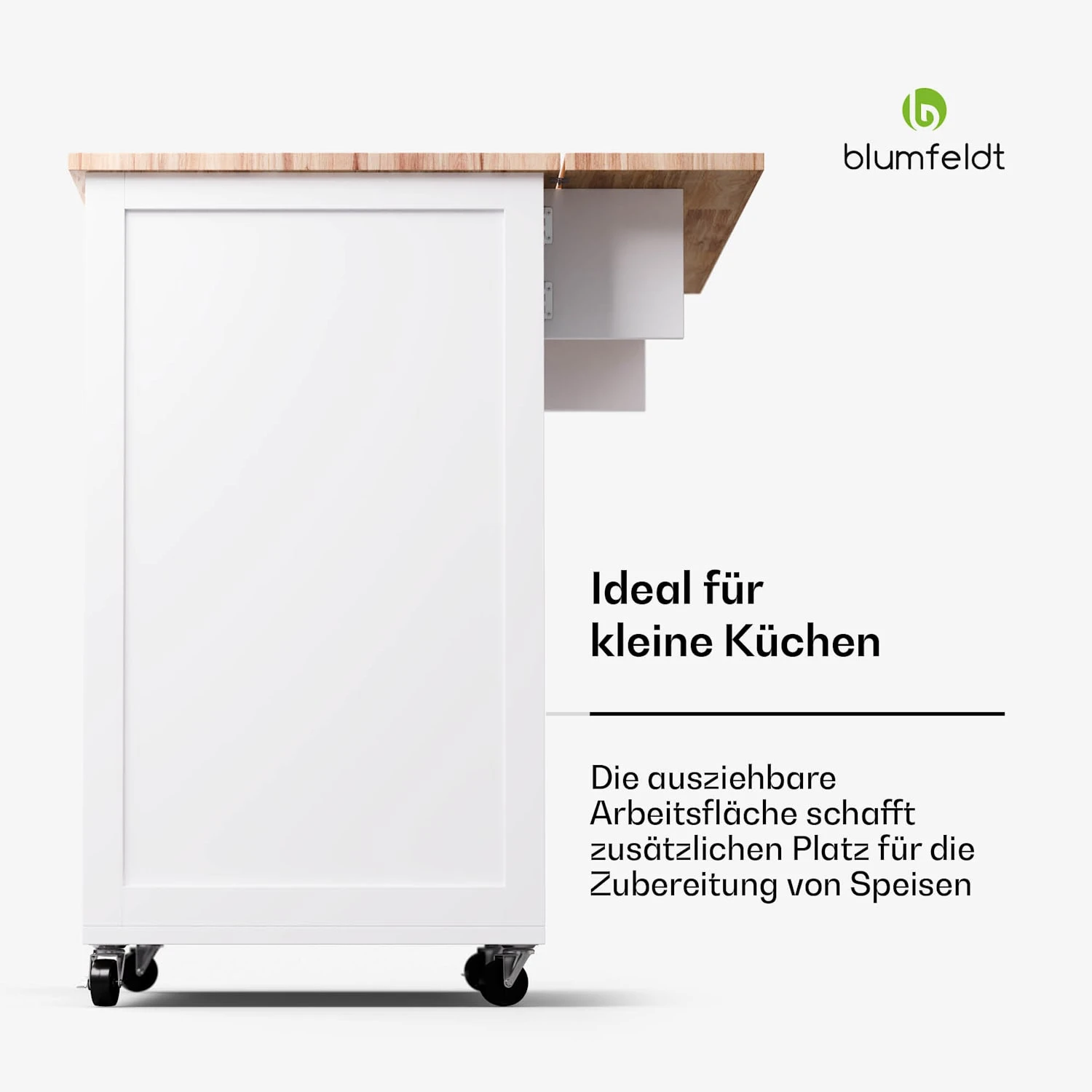 Erweiterbare Arbeitsfläche: Ideal für kleine Küchen, bietet zusätzlichen Raum zum Zubereiten von Mahlzeiten und Aufbewahren von Gegenständen.