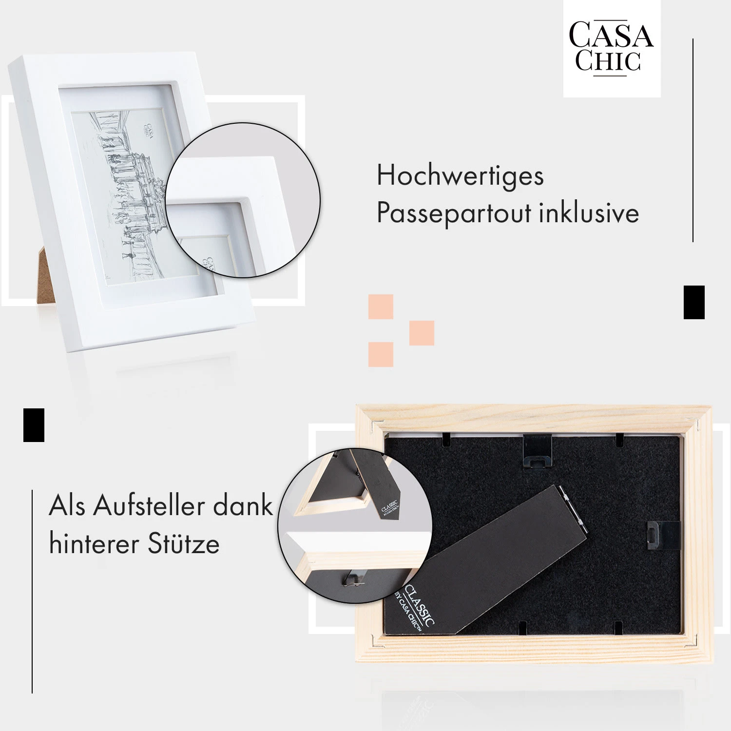 Das ansprechende Everton Bilderrahmen 3er-Set von Casa Chic by blumfeldt aus Echtholz bringt deine Fotos und Bilder sowohl im Hoch- als auch im Querformat ideal zur Geltung. Bleibe flexibel und gestalte wunderschöne Wandcollagen oder arrangiere deine Lieblingsfotos auf dem Sideboard oder im Regal. Das mitgelieferte Passepartout überlässt dir die Wahl des passenden Bildausschnitts. Ein schlichtes Rahmenprofil und die Frontscheibe aus Echtglas sorgen für Eleganz und besten Schutz.