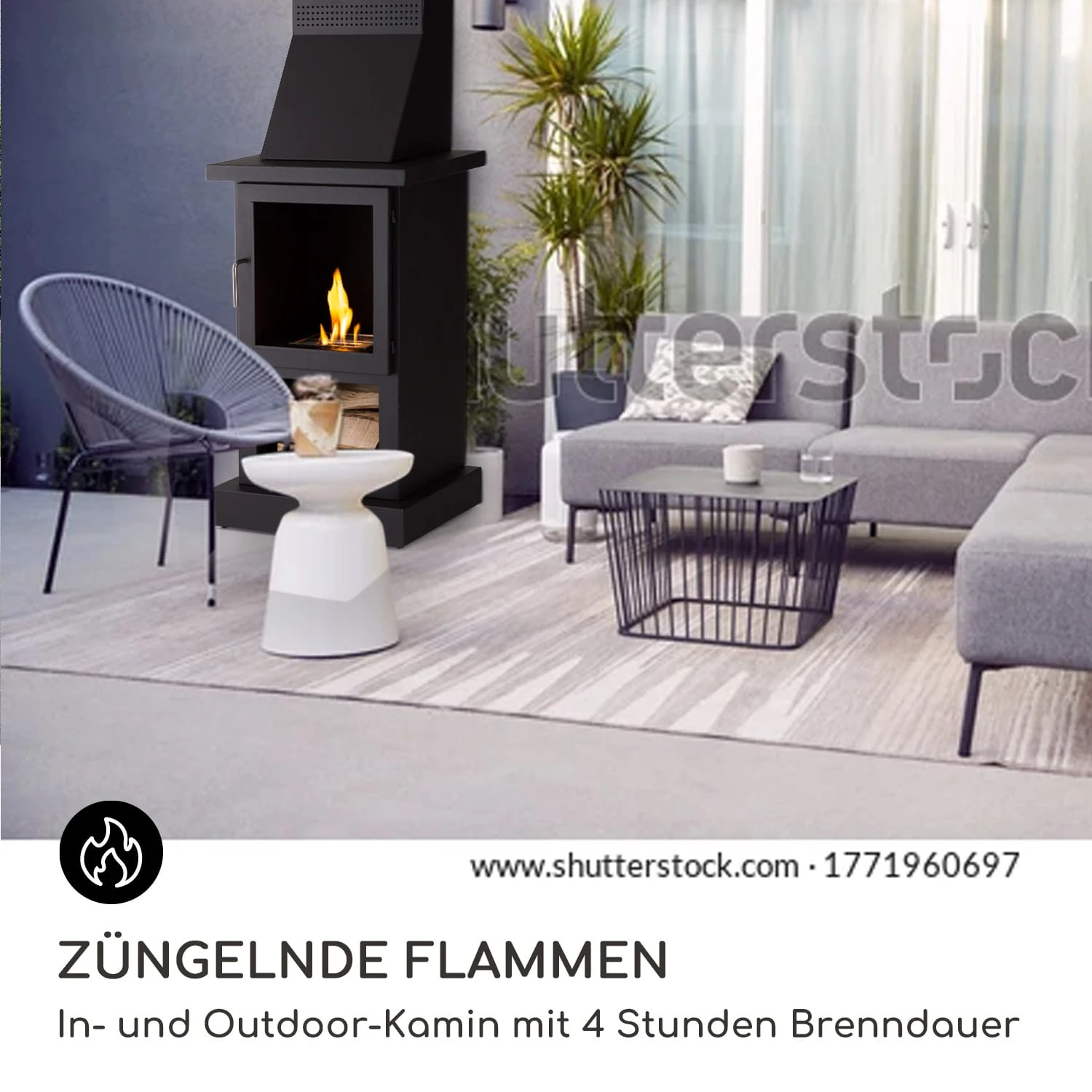 Züngelnde Flammen: In- und Outdoor-Kamin mit 4 Stunden Brenndauer