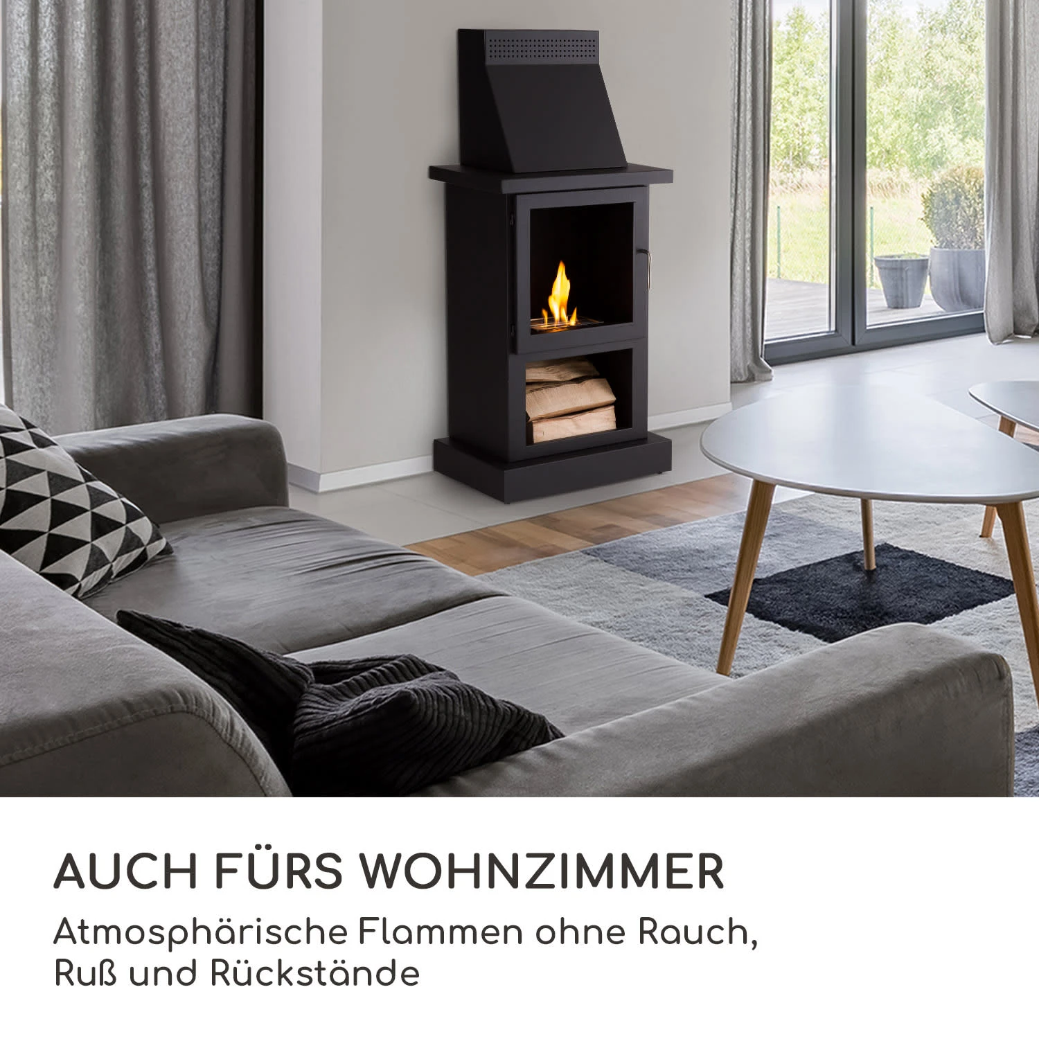 Auch fürs Wohnzimmer: atmosphärische Flammen ohne Rauch, Ruß und Rückstände