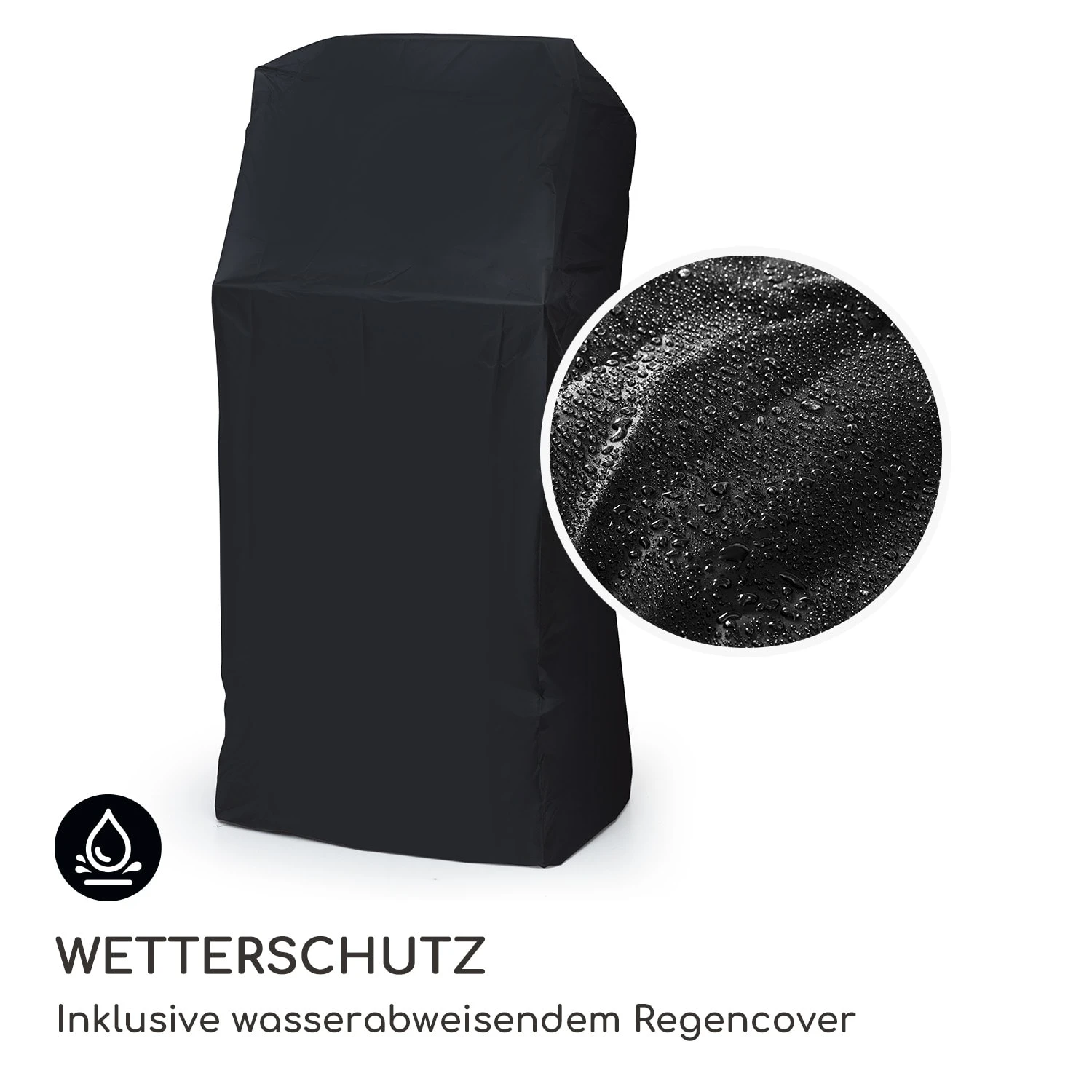 Terrasse oder im Garten installieren. Das beiliegende Regencover schützt ihn bei Nichtgebrauch vor Wind