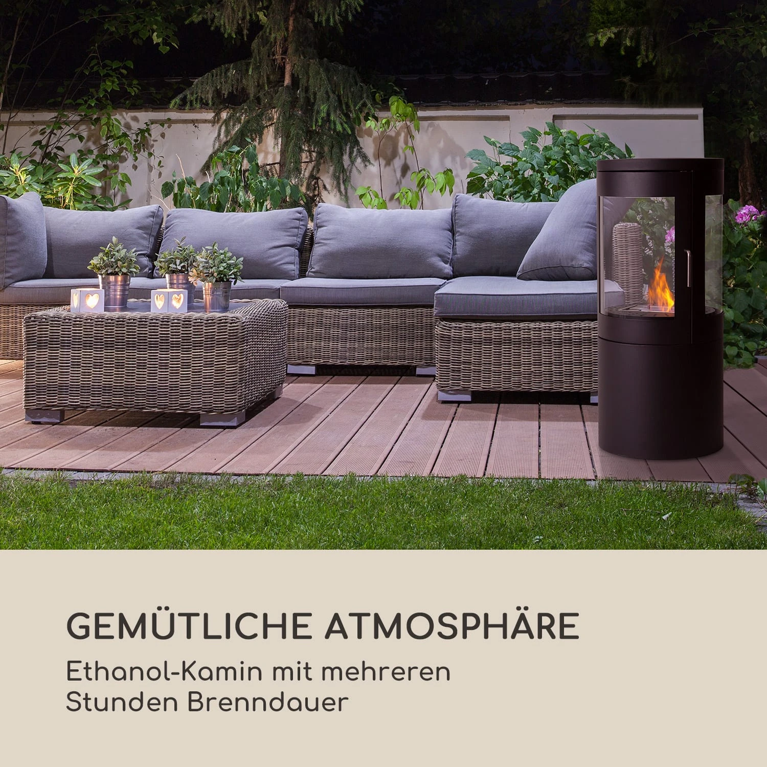 Gemütliche Atmosphäre: Ethanol-Kamin mit mehreren Stunden Brenndauer