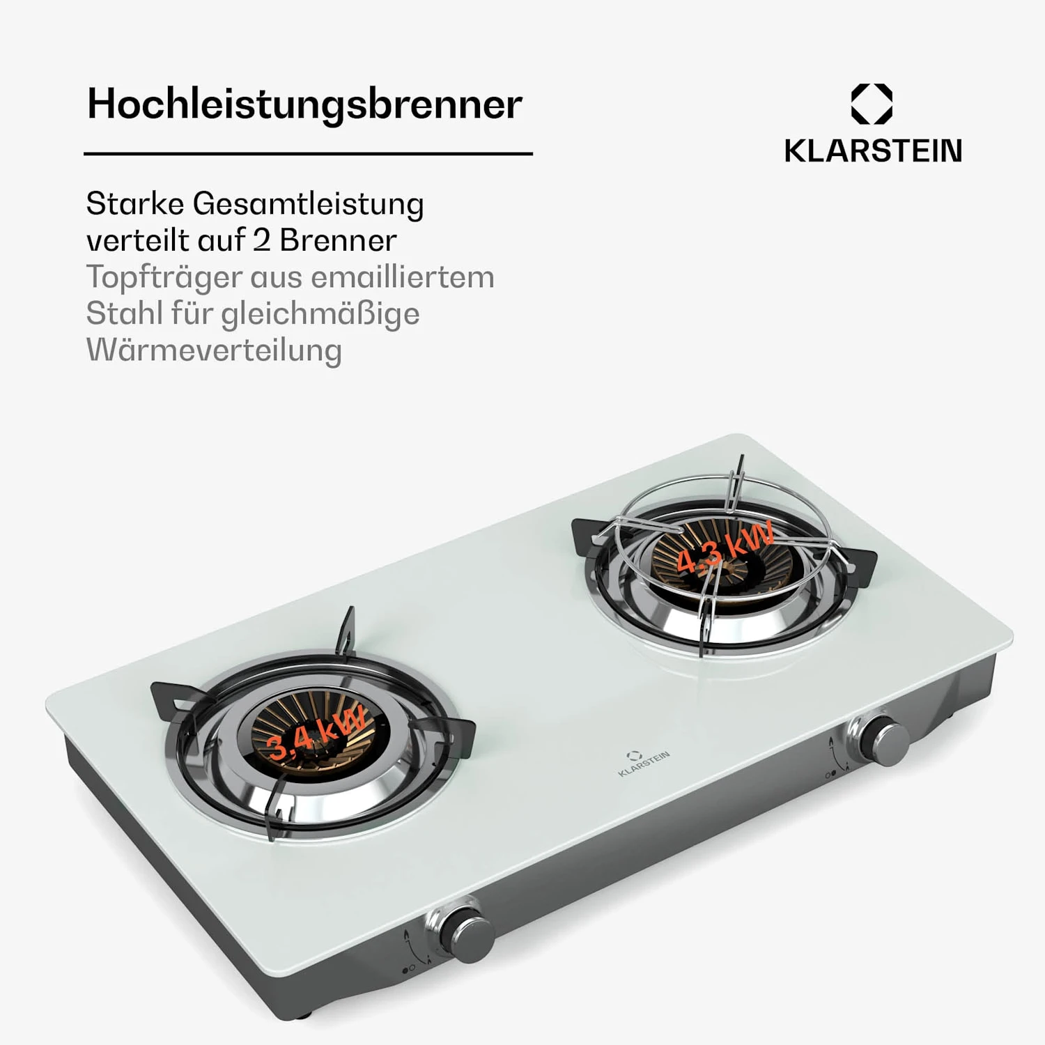 Leistungsstarker Campingkocher: Tragbarer Gaskocher mit 2 Brennern und einer Gesamtleistung von 7,7 kW für schnelles und effizientes Kochen