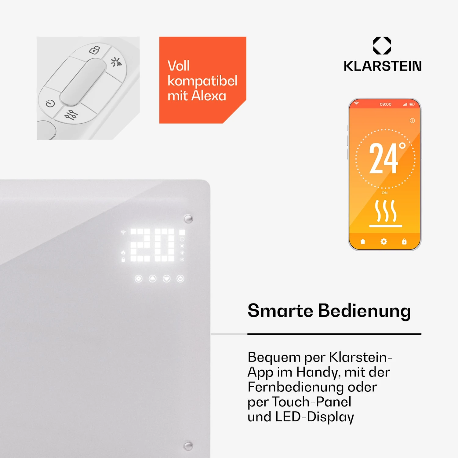 Einfach bequem: Steuerung per Klarstein-App, voll kompatibel mit Alexa oder per Fernbedienung