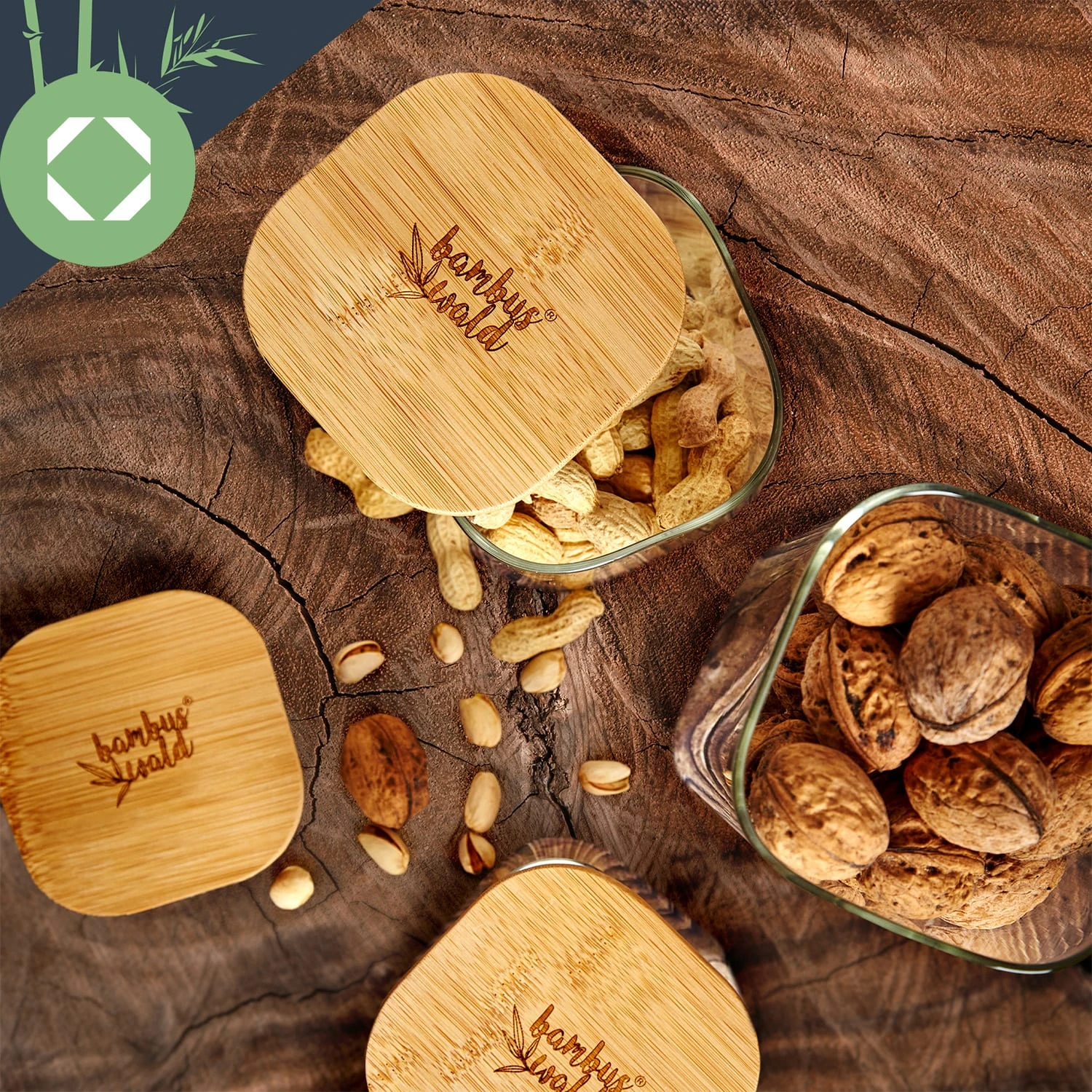 Glas trifft Bambus: edles, eckiges Vorratsglas mit Deckel