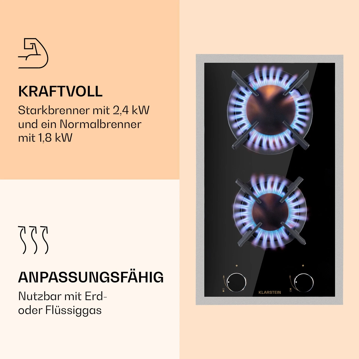 - Gaskochfeld mit 2 Brennern