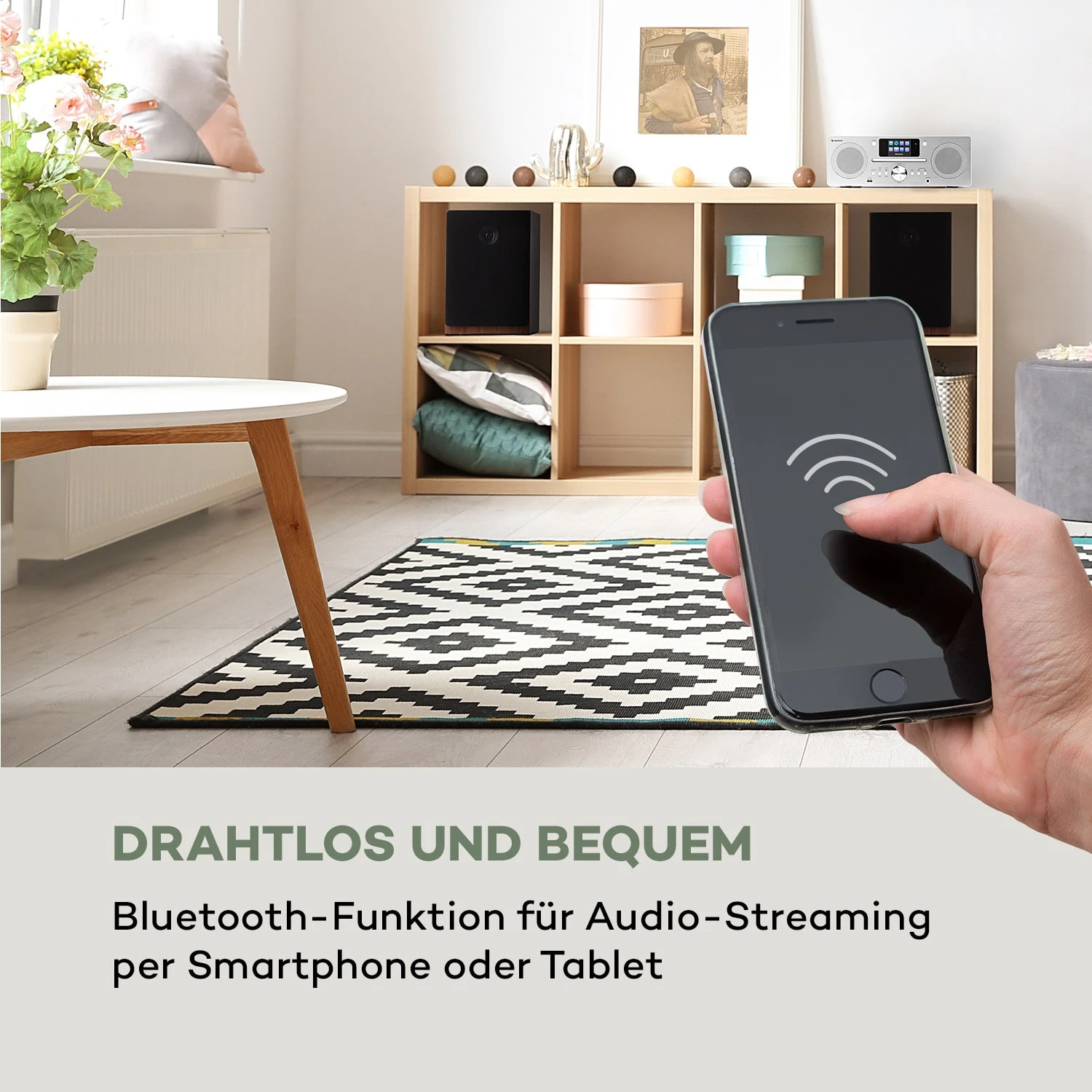 Drahtlos und bequem: Bluetooth-Funktion für Audio-Streaming per Smartphone, Tablet oder Laptop