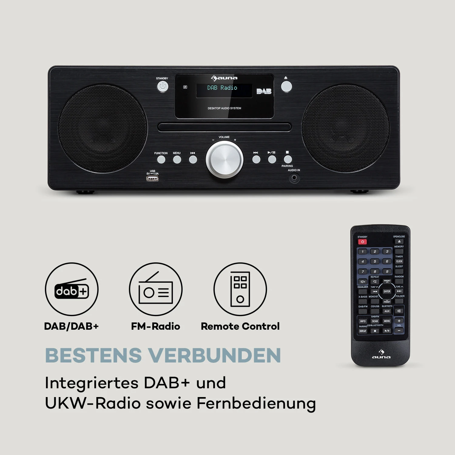 Bestens verbunden: integriertes DAB+ und UKW-Radio sowie Fernbedienung