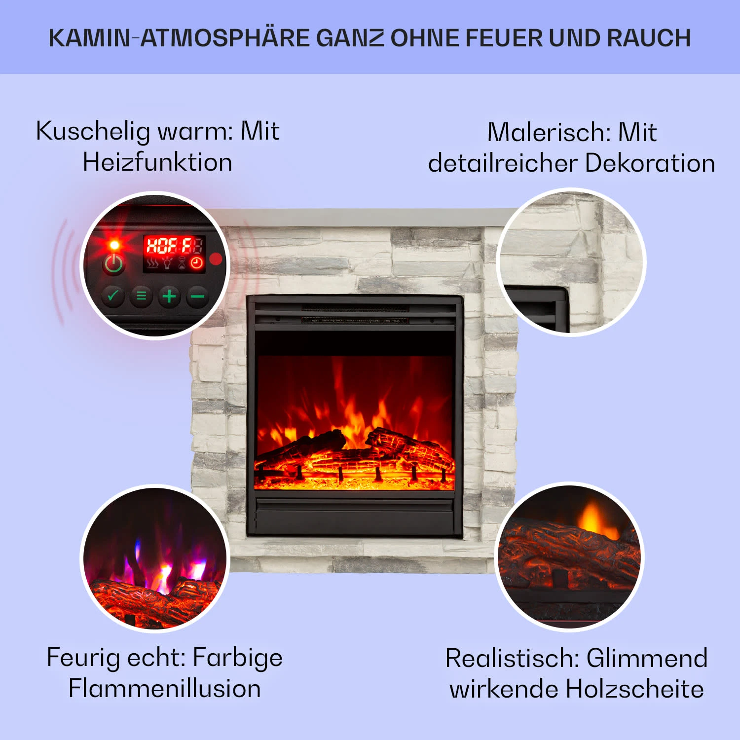 - elektrischer Kamin mit Beleuchtung und zuschaltbarer Heizfunktion