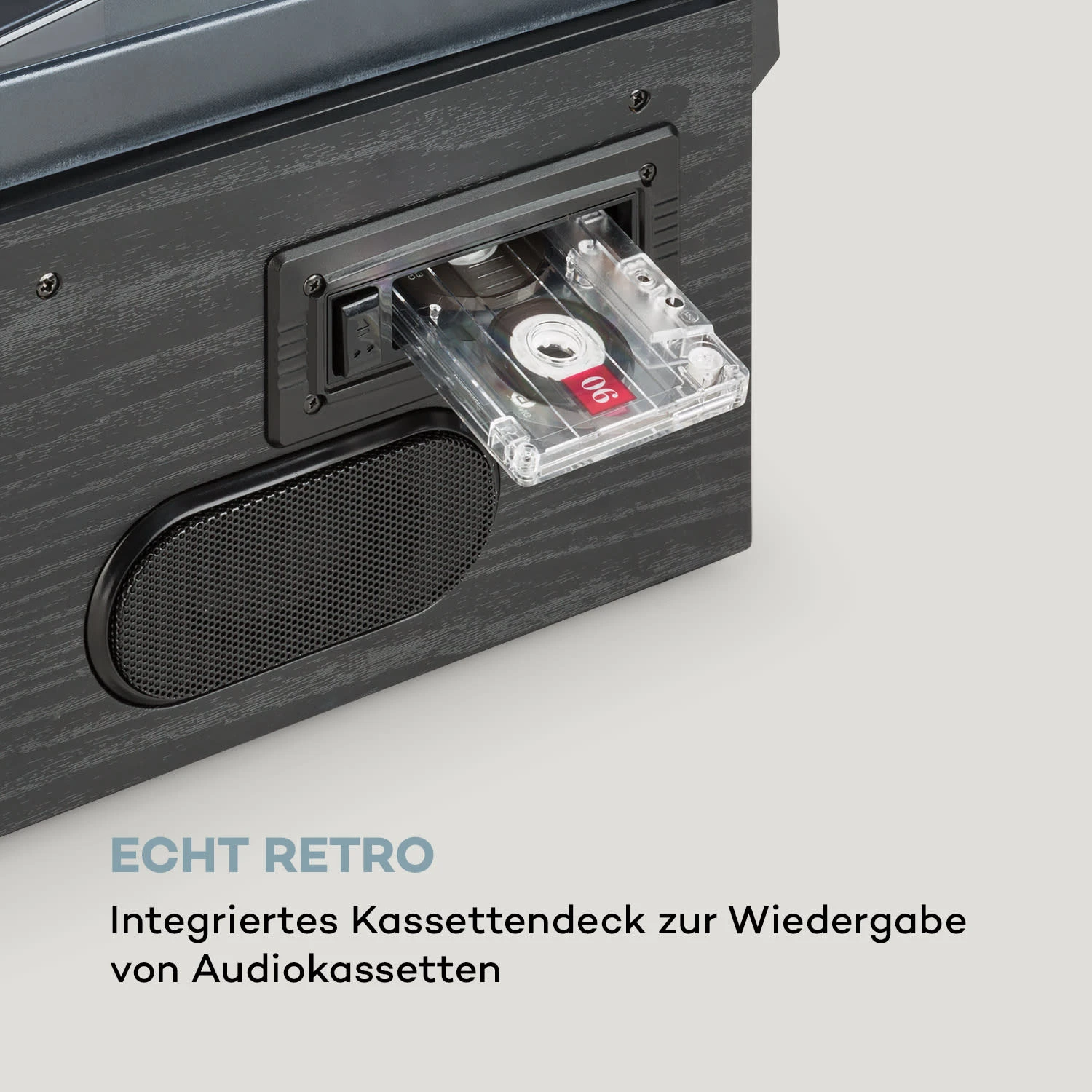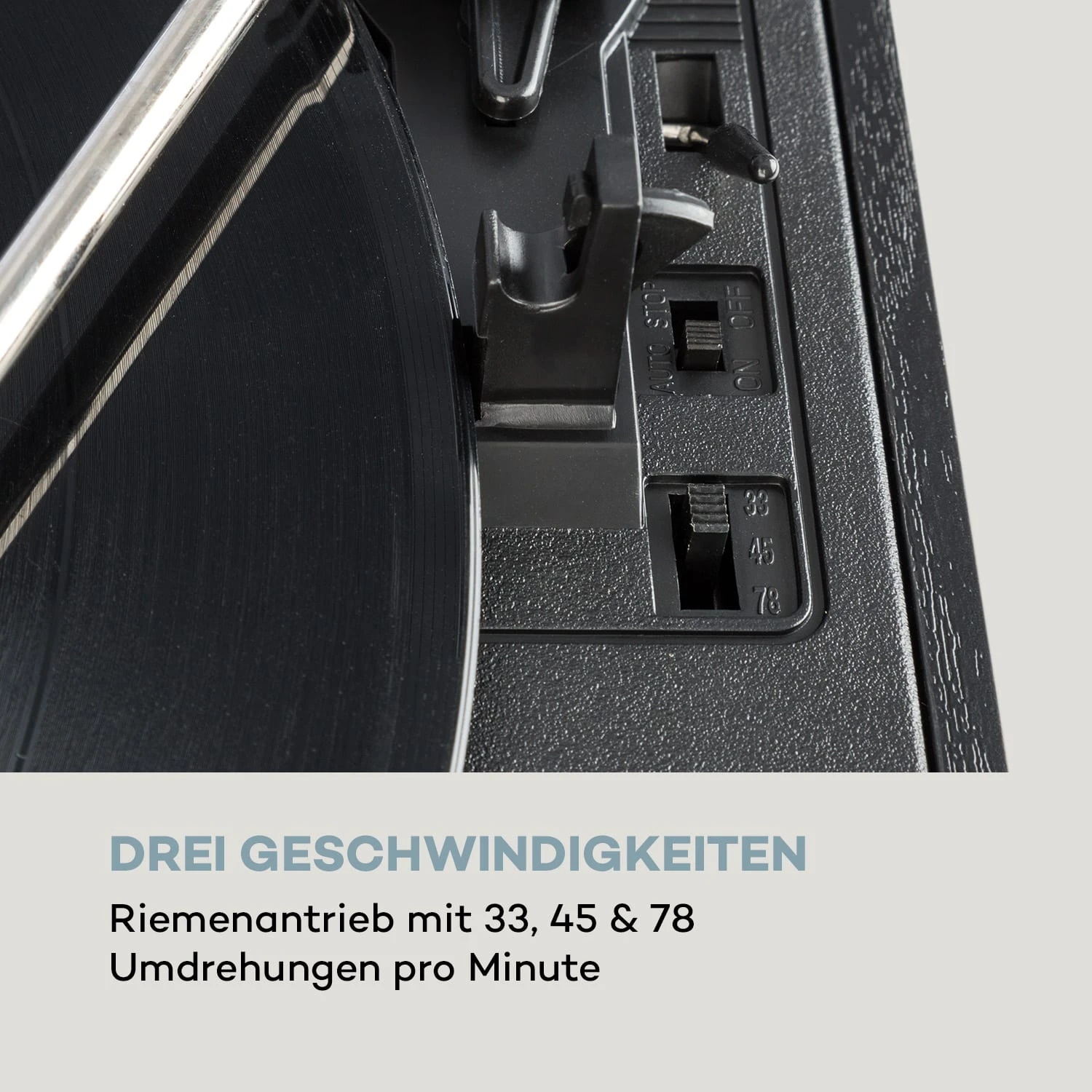 - 3 Geschwindigkeiten Plattenspieler: 33/45/78 Umdrehungen pro Minute