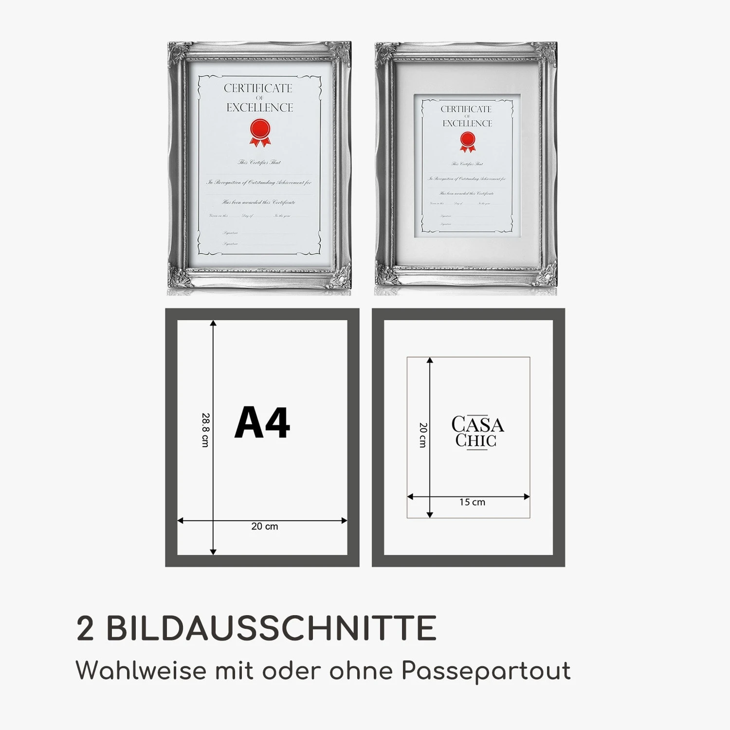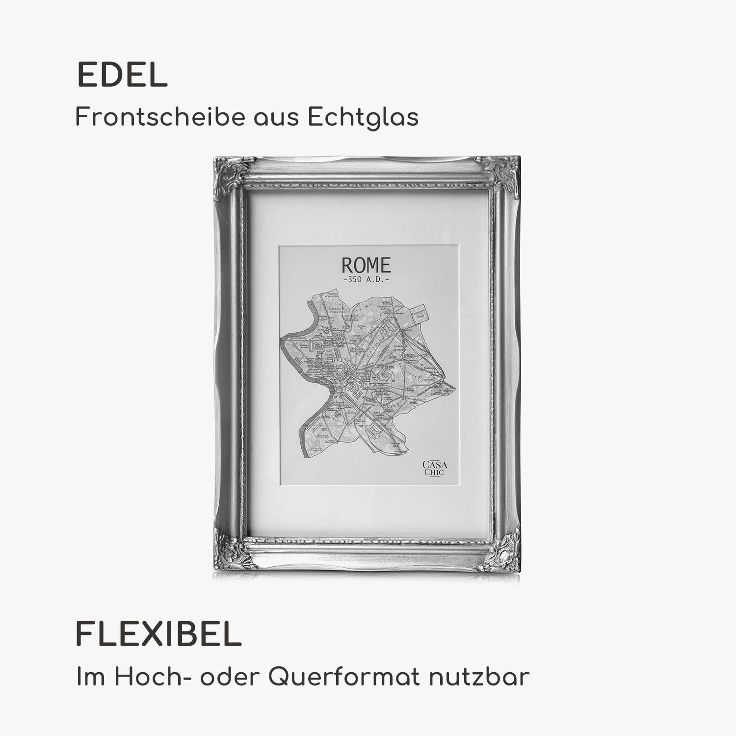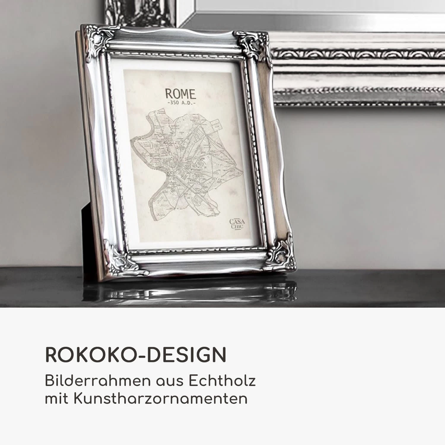 Rokoko-Design: Bilderrahmen aus Echtholz mit Kunstharzornamenten