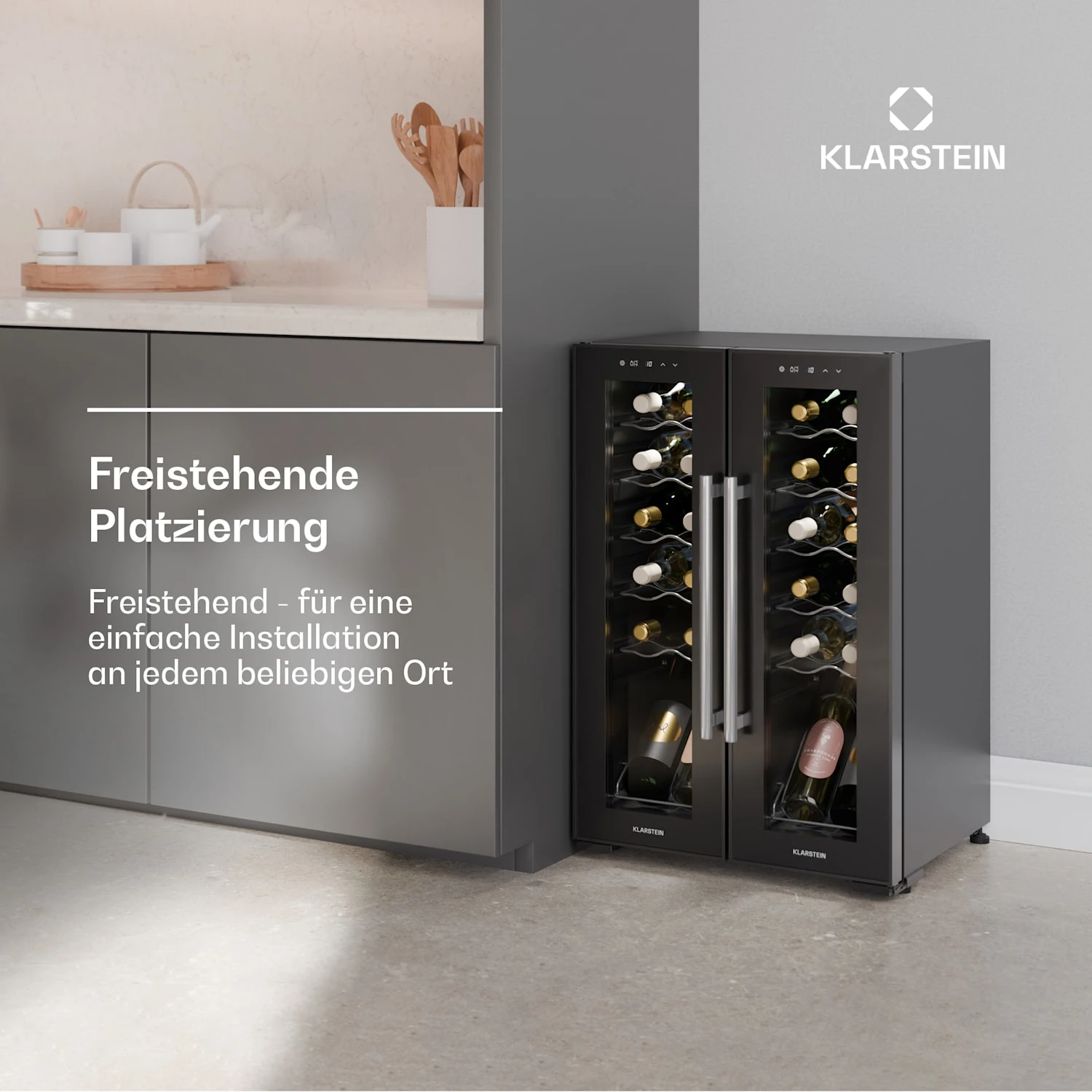 Freistehender Weinkühlschrank: Flexibel platzierbar in jedem Raum Ihres Zuhauses, ohne feste Installation; ideal für müheloses Umstellen und vielseitigen Einsatz.