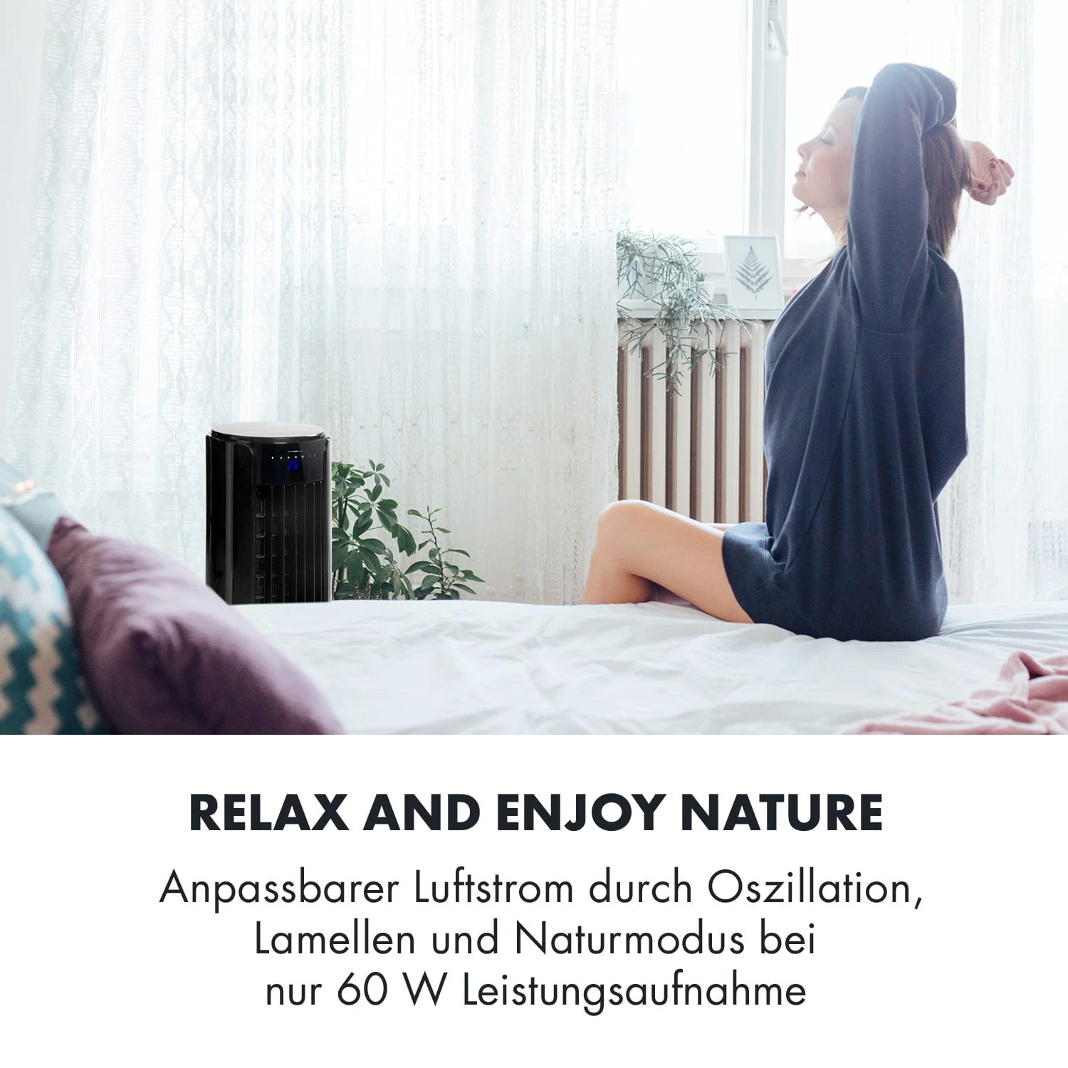 - zuschaltbare, horizontale 45°-Oszillation zur Verteilung des Luftstroms