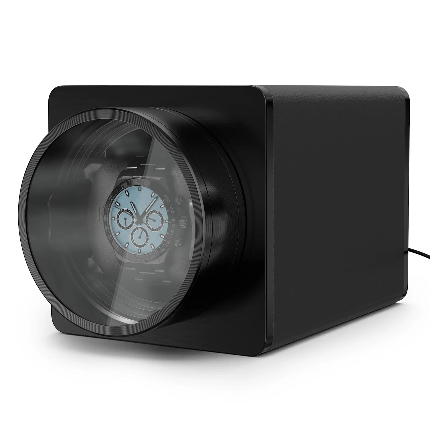 Elegantes Design: Der Uhrenbeweger aus veganem Leder und temperiertem Glas schützt vor Staub und sieht luxuriös aus, ideal als Geschenk.