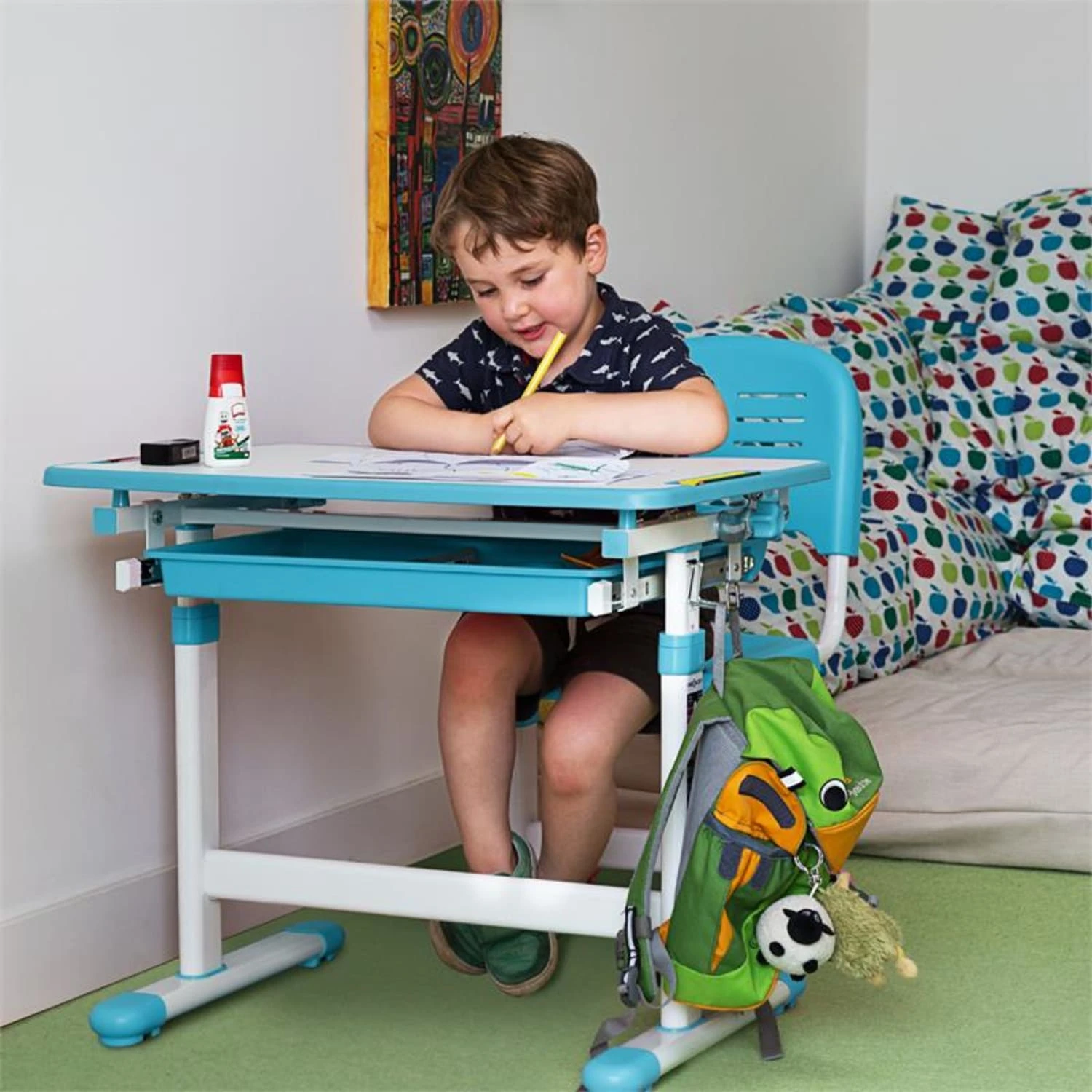 - alles geordnet: herausziehbare Schublade mit Fächern für Stifte, Bastelwerkzeug, Hefte, Blöcke oder Bücher
