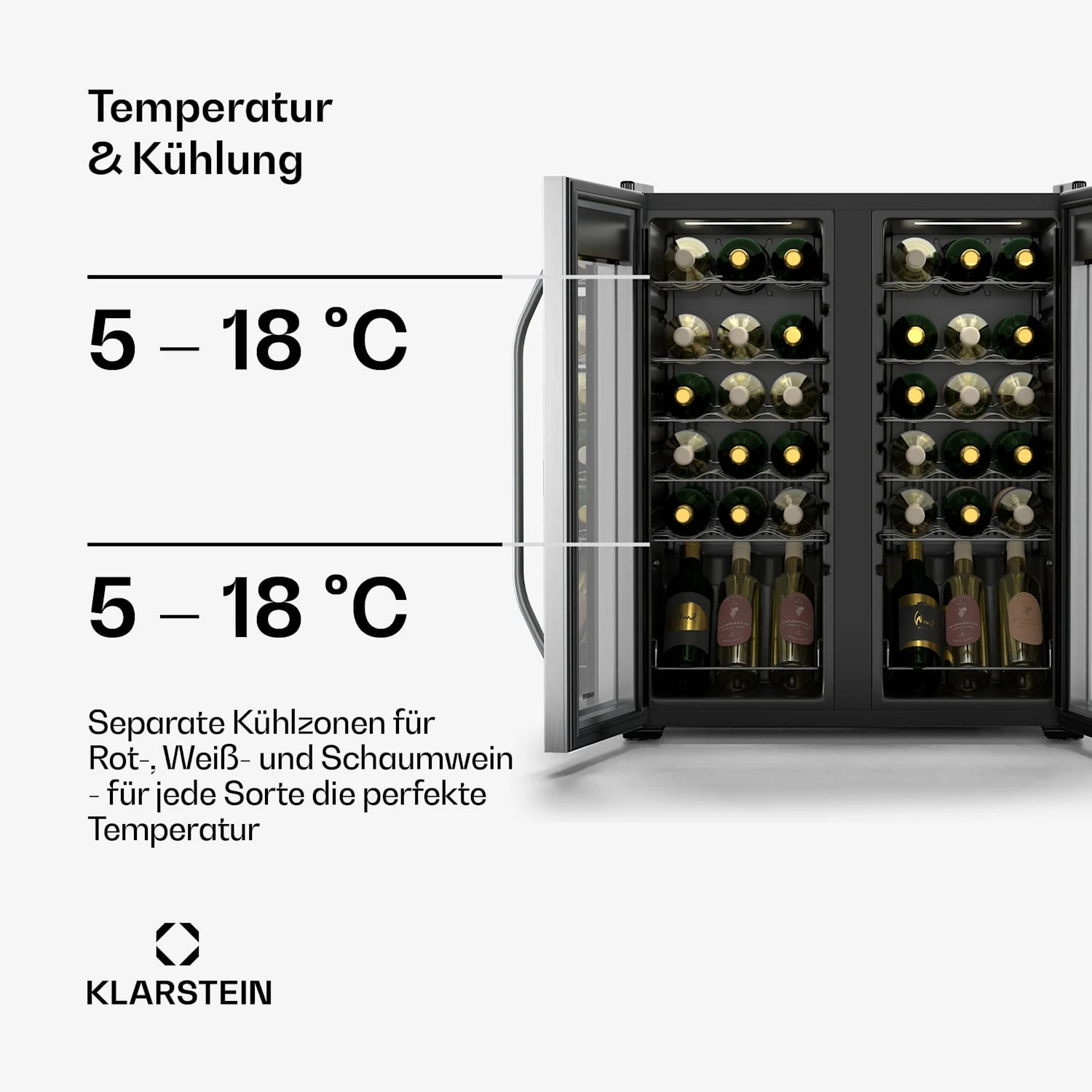 Temperaturzonen: 5 – 18 °C