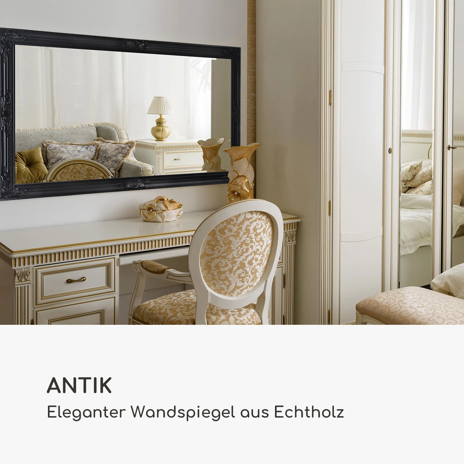 Antik: eleganter Wandspiegel aus Echtholz