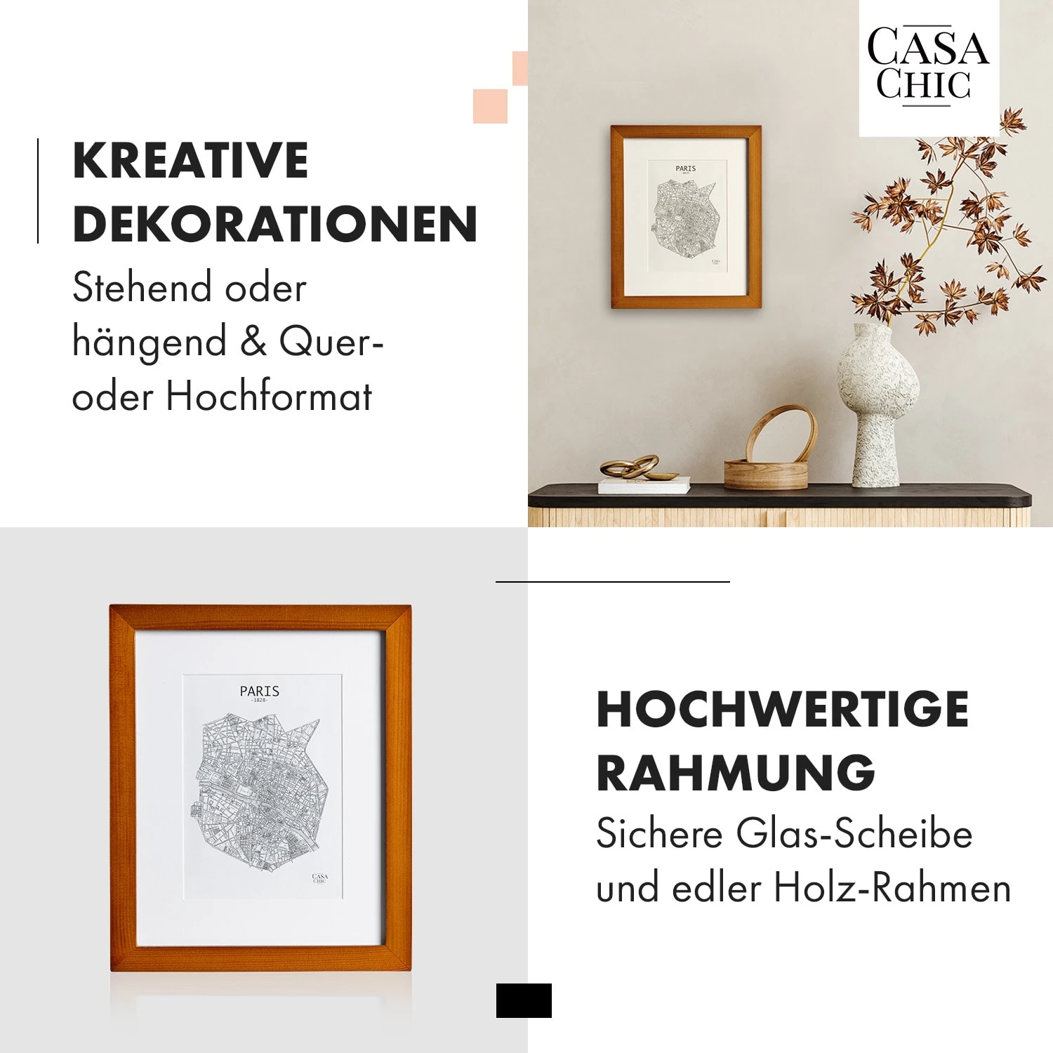Setze mit den Kenton Bilderrahmen von Casa Chic by blumfeldt deine Lieblingsfotos und Bilder gekonnt in Szene. Die hochwertigen Echtholz-Rahmen veredeln durch ihre schlichte Eleganz deine Zimmerwände, Sideboards oder Regale. Im Hoch- oder Querformat wählst du dank des mitgelieferten Passepartouts den passenden Bildausschnitt. Hinter seiner Sicherheitsglasscheibe sind deine Kunstwerke vor Staub und Schmutz bestens geschützt.