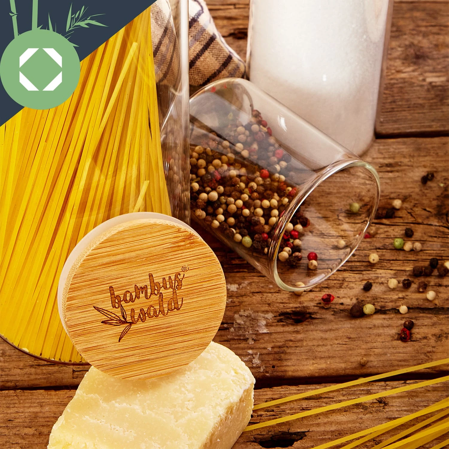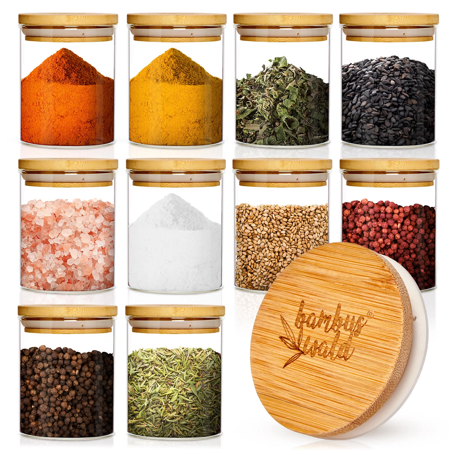 Glas trifft Bambus: edle Gewürzgläser mit Deckel aus 100% Bambus