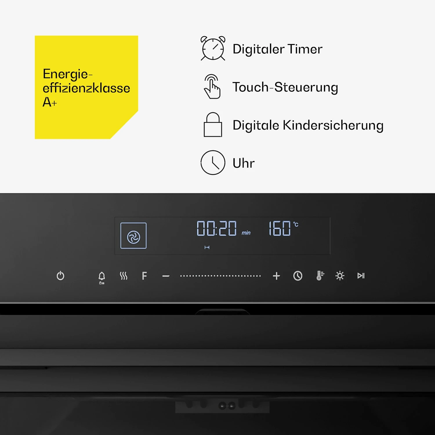 - Produktabmessungen Einbaubackofen: 59,5 x 56,8 x 59,5 cm (LxBxH)