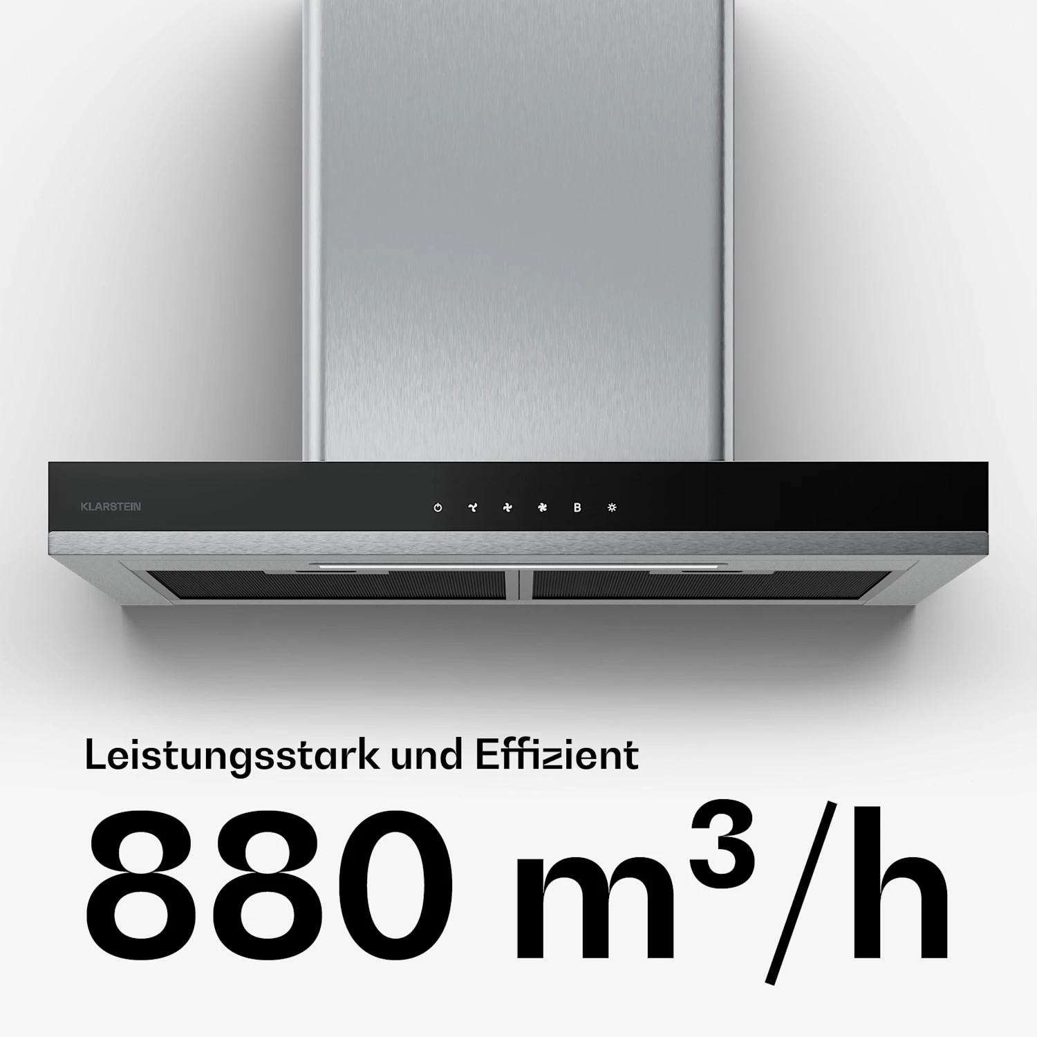 Airflow Power der Dunstabzugshaube: Bis zu 881,6 m³/h (im Boost-Modus) für schnelle Eliminierung von Dampf und Gerüchen.