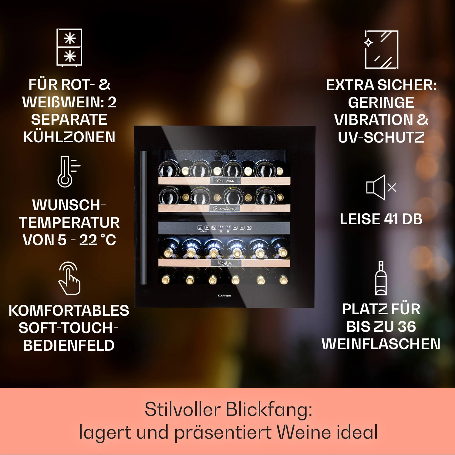 2 Kühlzonen: regulierbar von 5 – 22 °C
