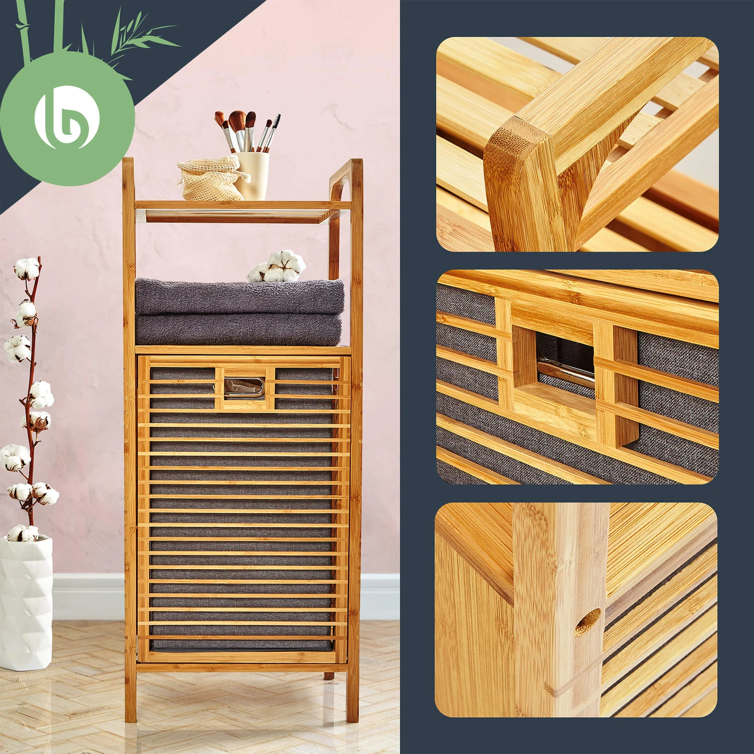 Natürliche Materialien: 2-in-1 Standregal aus Bambus mit Wäschekorb aus Baumwollleinen