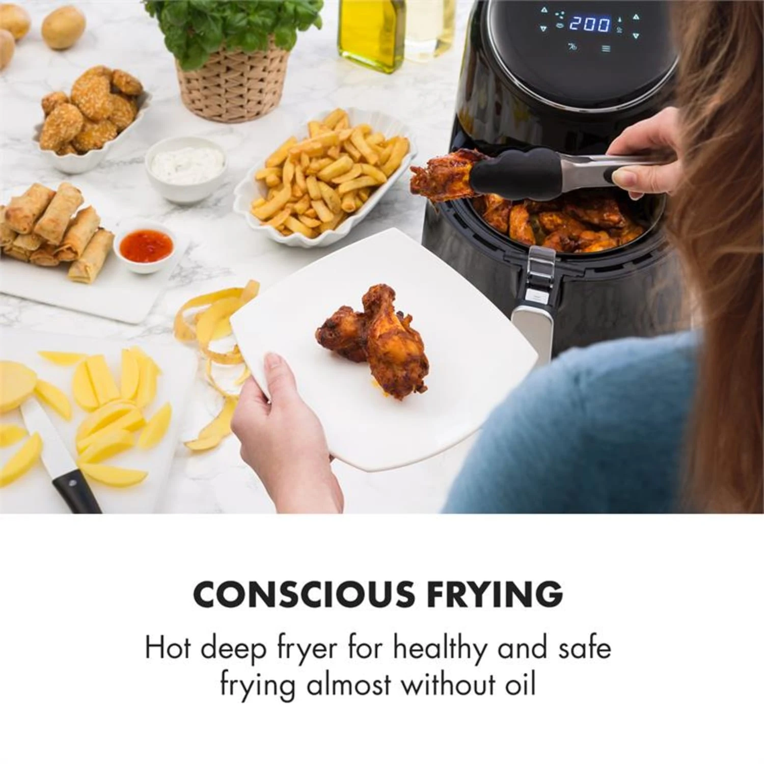 Ohne Öl & Fett: keine unangenehmen Fettgerüche und bis zu 80% weniger Kalorien als konvetionelle Fritteusen