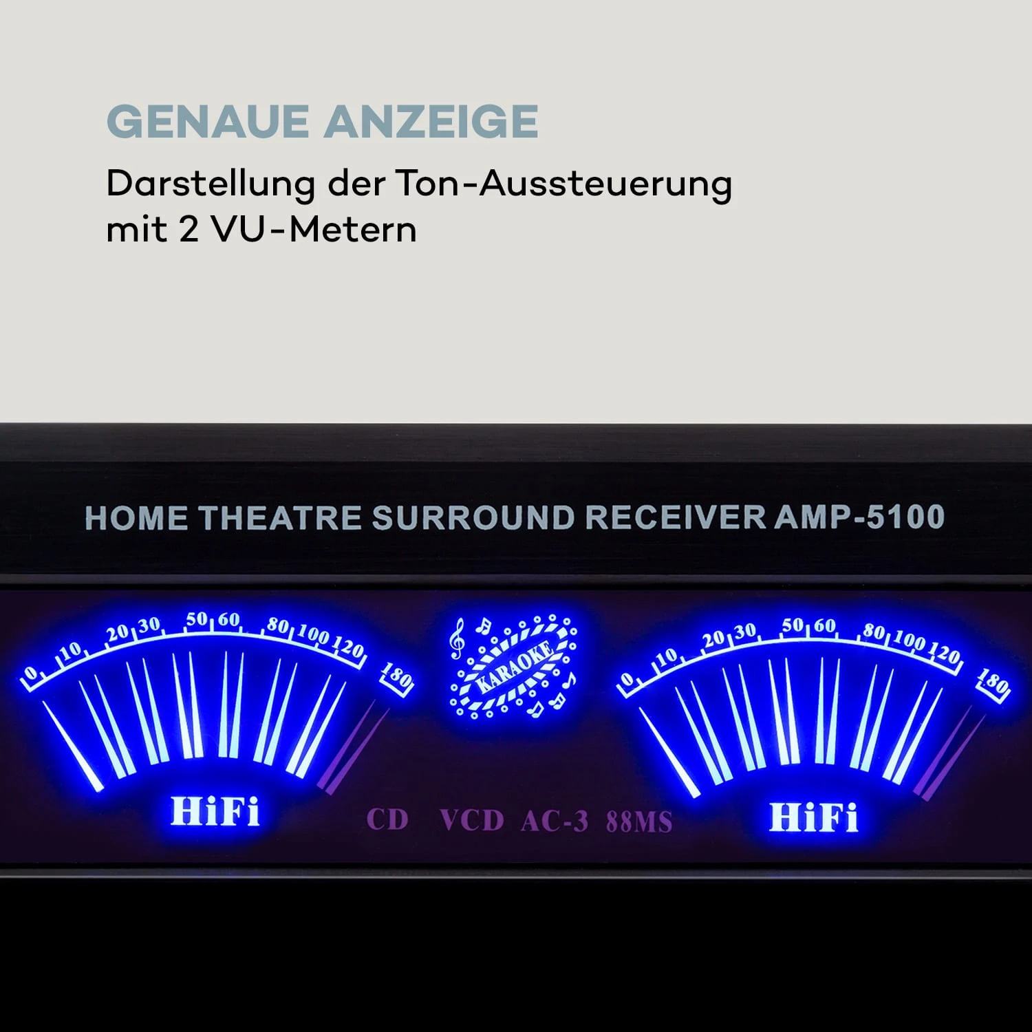 5.1 Surround-Verstärker: mit einer Leistung von 2 x 120 Watt + 3 x 50 Watt RMS