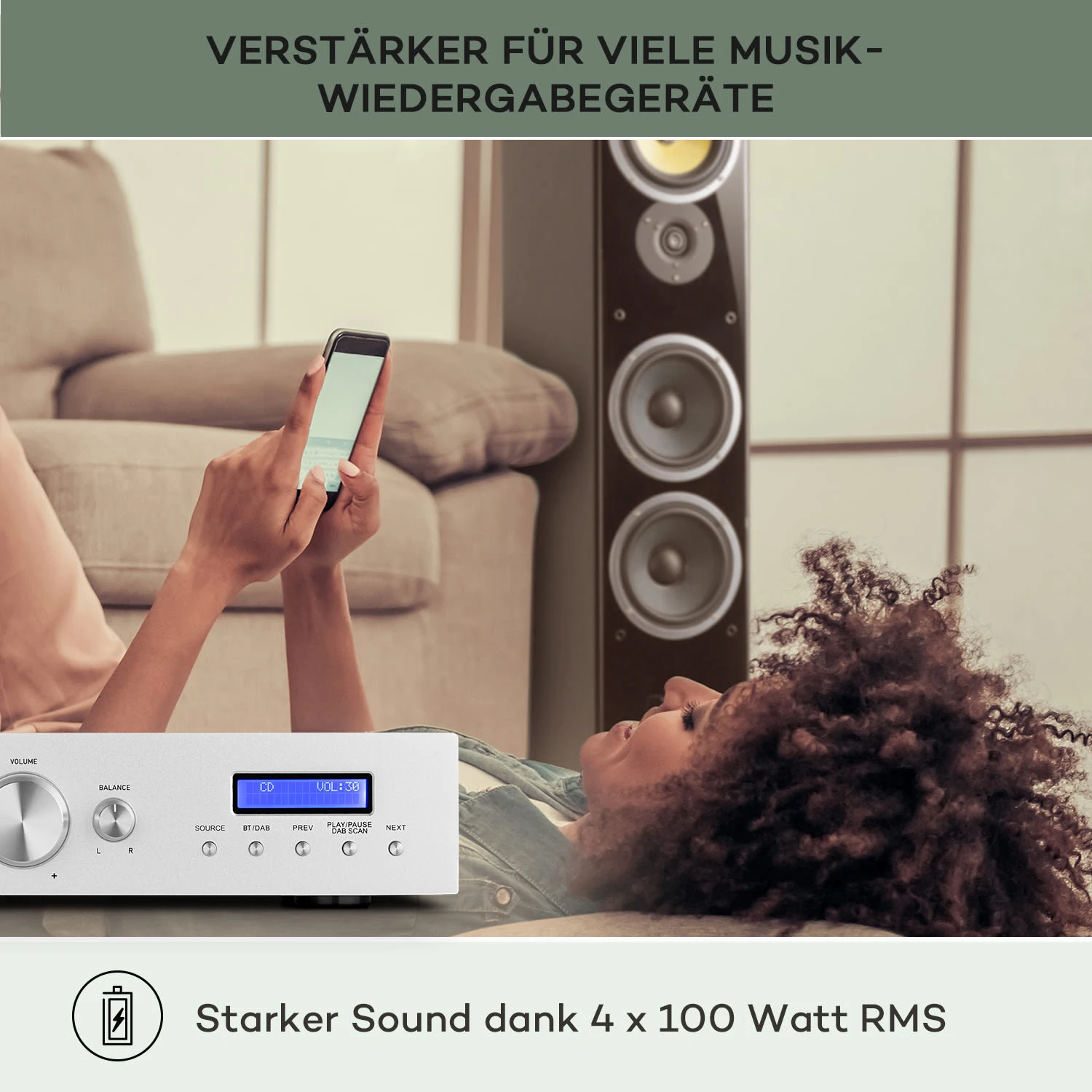 Kraftvoll: Digitaler HiFi Stereo Amplifier mit 4 x 100 Watt RMS Ausgangsleistung