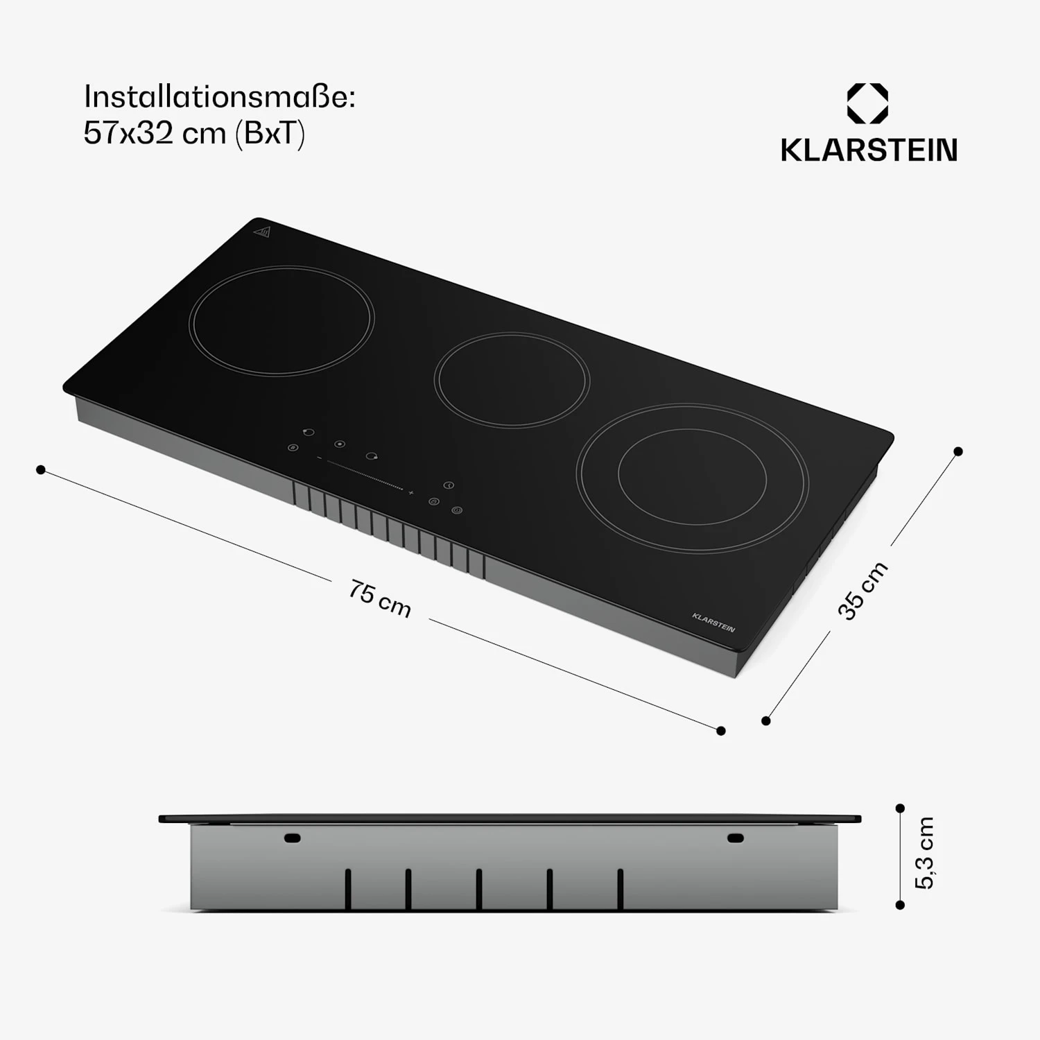 Platzsparendes Slim-Design: 75 cm breites VTC-Kochfeld passt ideal in kleine Küchen oder lässt sich perfekt mit Downdraft-Dunstabzügen kombinieren
