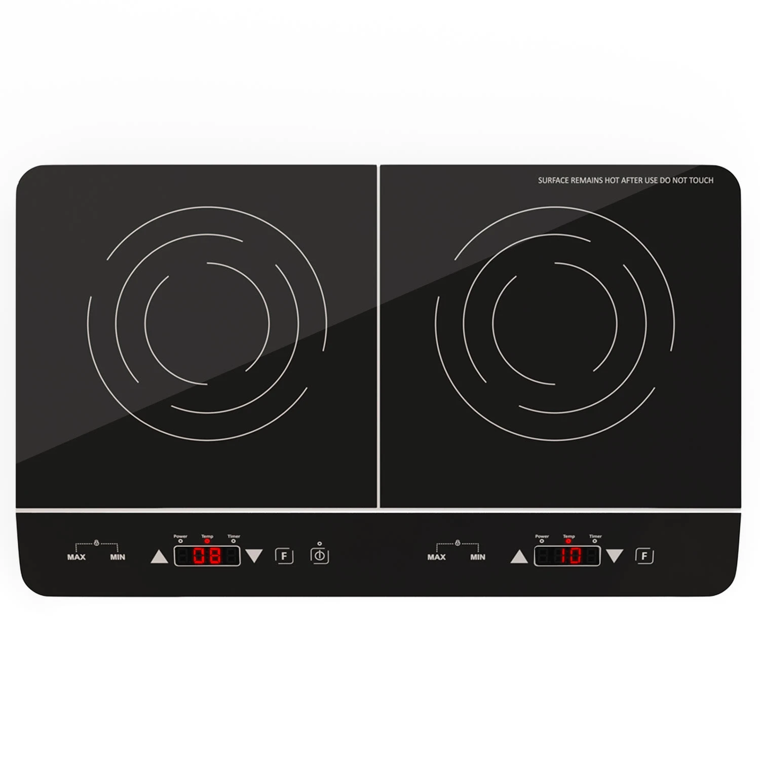 Kraftvolle Hitze: 3500 Watt starkes Doppel-Induktionskochfeld mit 2000 bzw. 1500 Watt Leistung