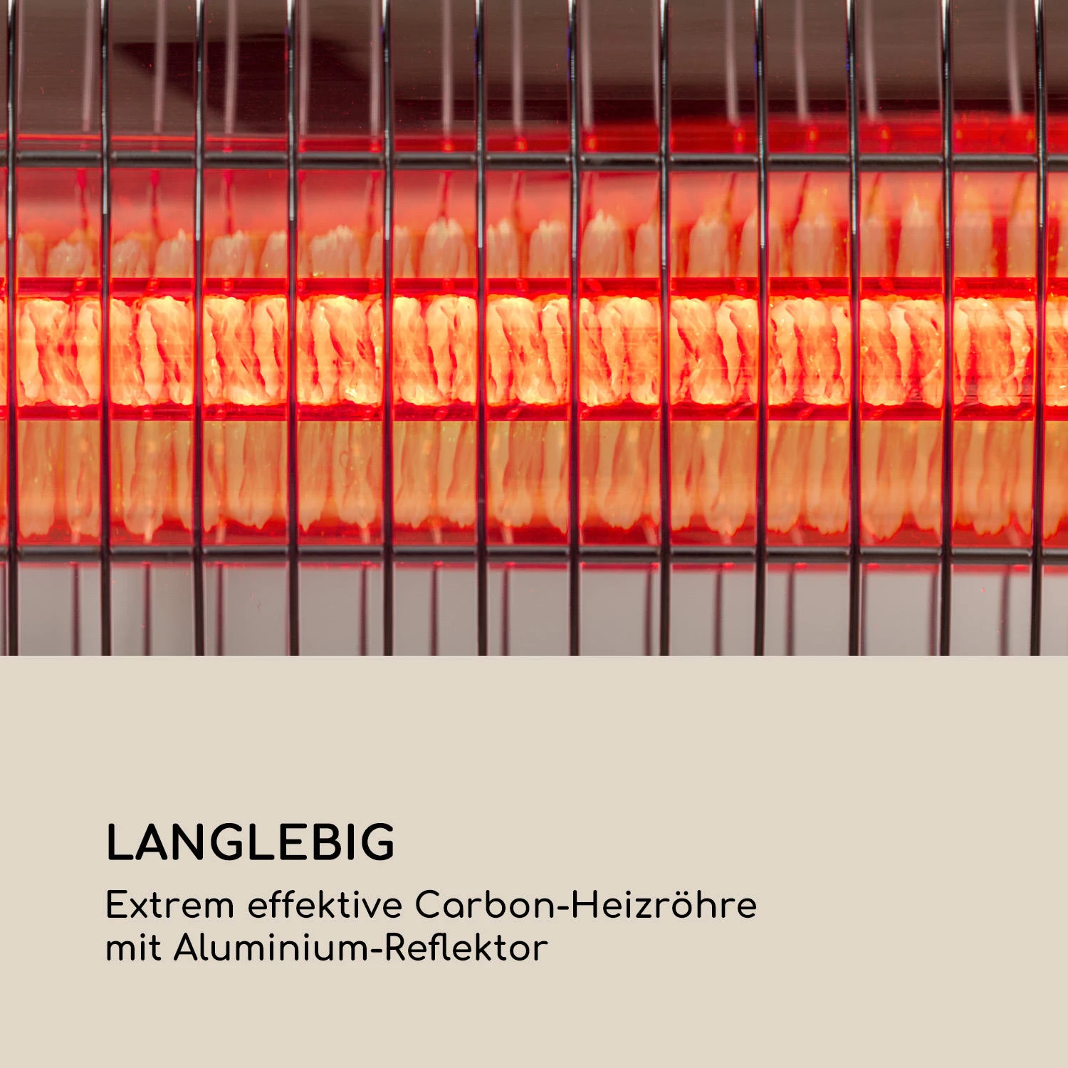 Extrem blendarm: goldbeschichtete Carbonröhre mit MinimalGlare Heating Tube-Technologie für minimale Lichtintensität