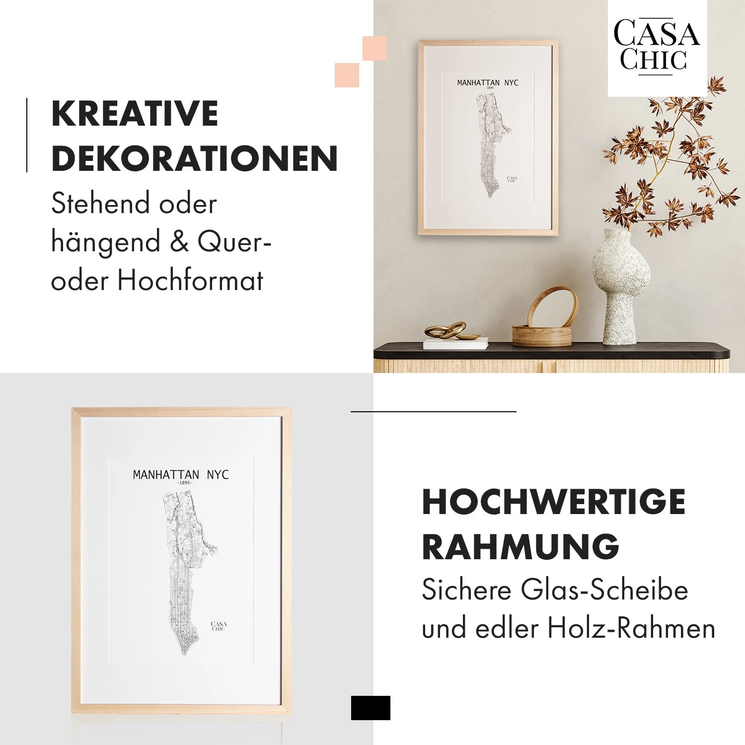 Unbehandelt: schlichter Echtholz-Bilderrahmen mit Frontscheibe
