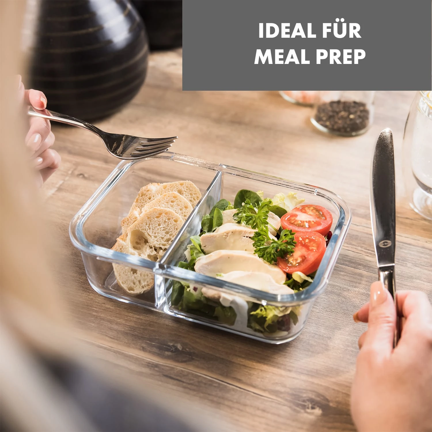 - 1040 ml Volumen mit zwei getrennten Kammern