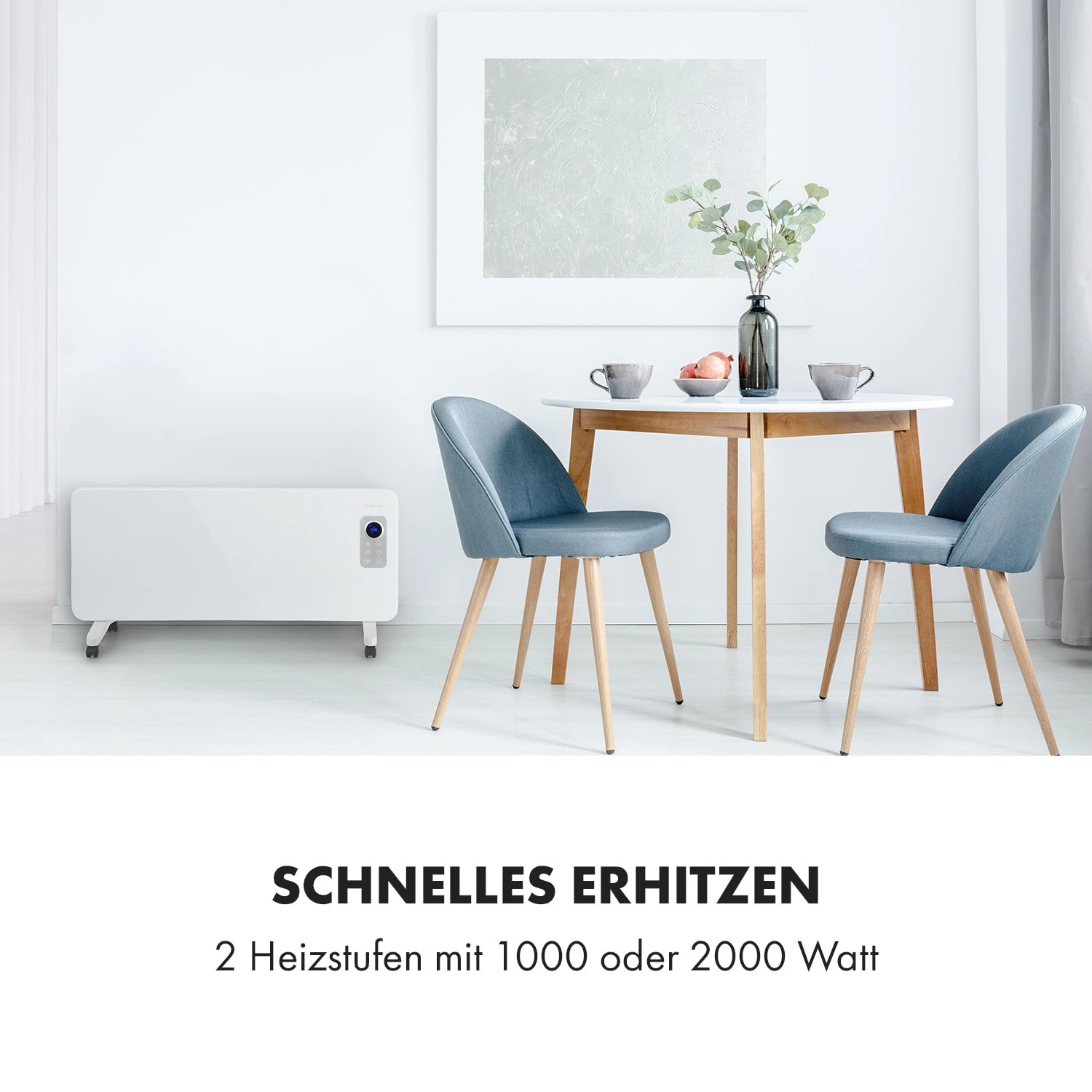 Schnelles Erhitzen: 2 Heizstufen mit 1000 oder 2000 Watt