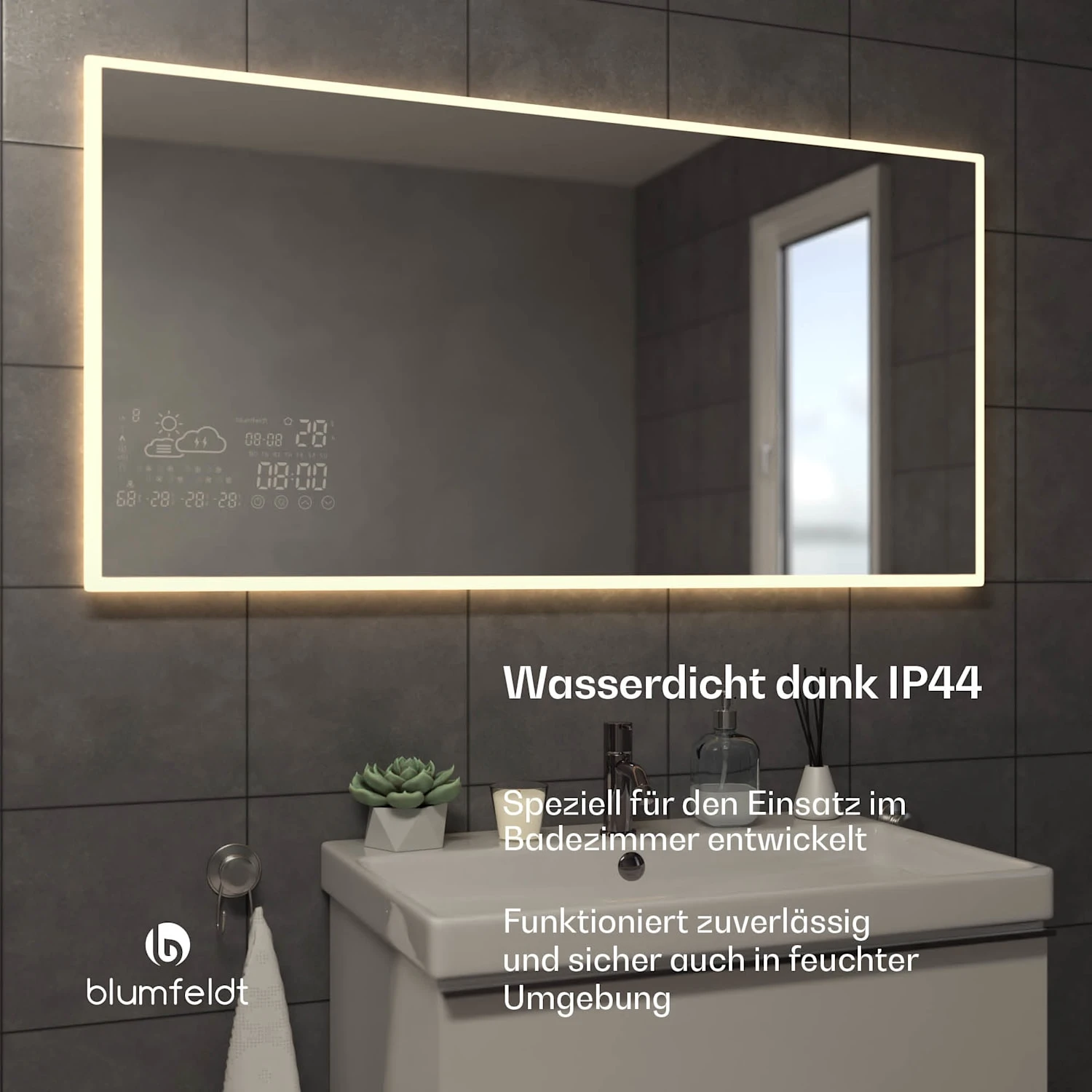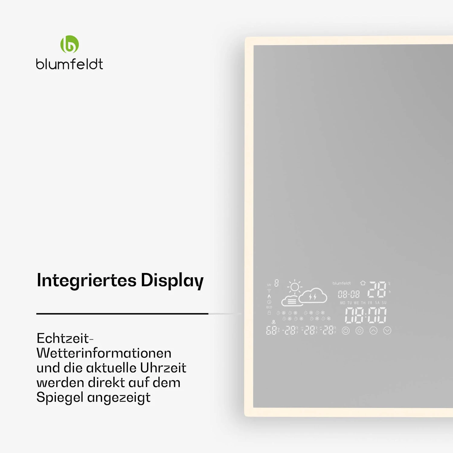 Smart Mirror mit integrierter Anzeige für Wetter und Zeit