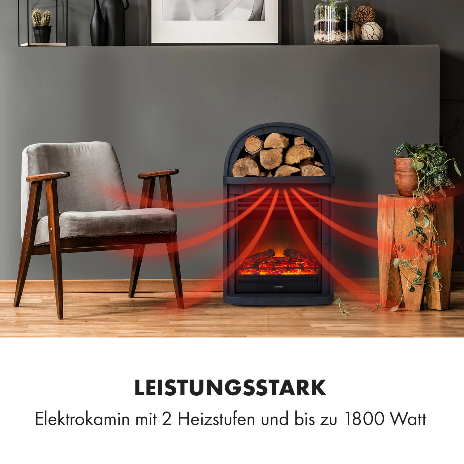 Leistungsstark: Elektrokamin mit 2 Heizstufen und bis zu 1800 Watt