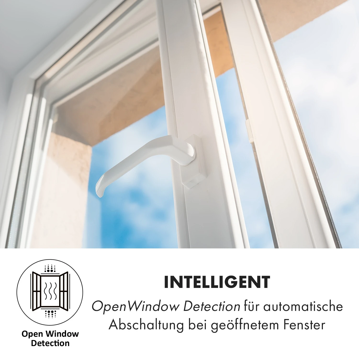 - OpenWindow Detection; wenn die Temperatur innerhalb von 10 Minuten um 4 °C fällt, wird automatisch die Heizfunktion deaktiviert