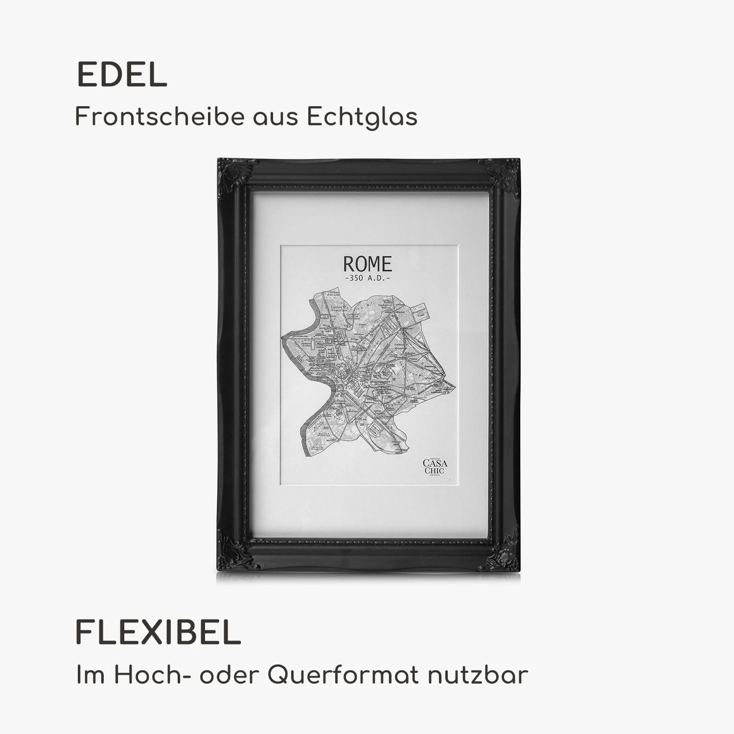 - Rahmen aus Echtholz mit Kunstharzornamenten