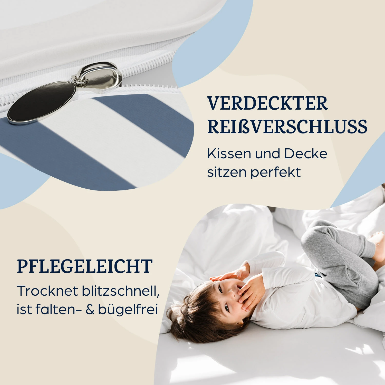 Liebevolles Design: Kopfkissen- und Bettdeckenbezug ergeben ein tolles Motiv