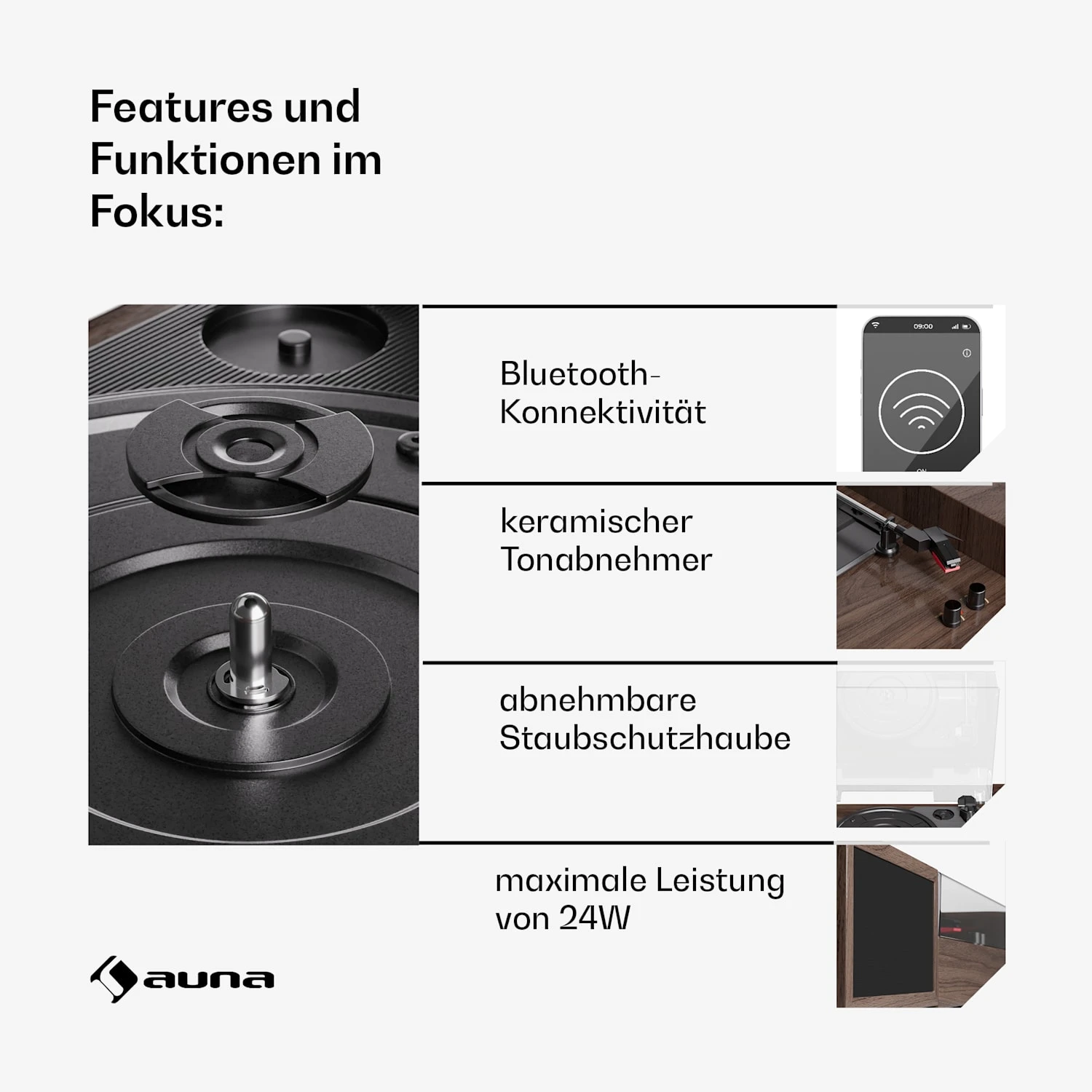 - Keramik-Tonabnehmer und abnehmbare Staubschutzhaube